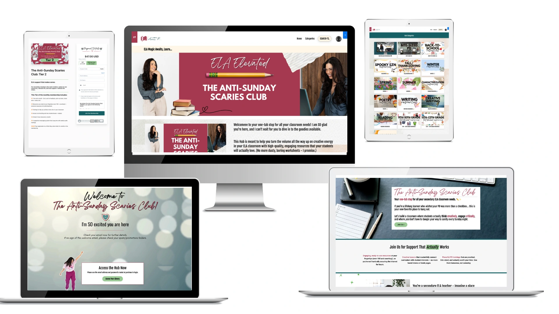 Designed and built a complete Kajabi sales funnel and customized membership experience Kajabi theme for a secondary ELA teacher membership program.