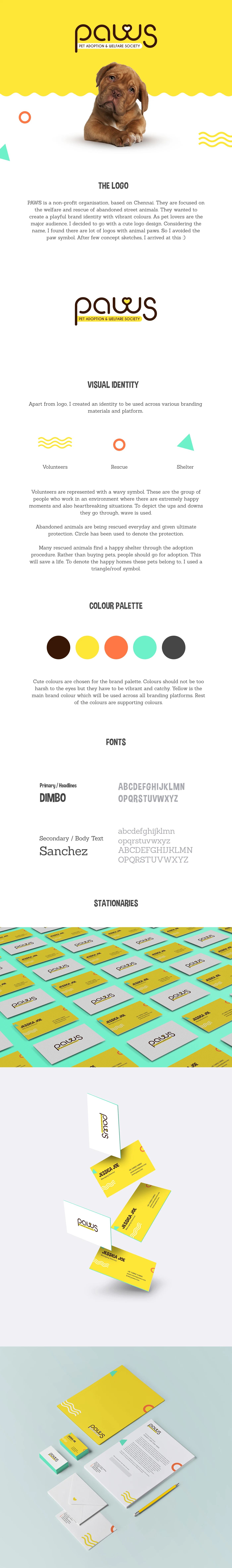 PAWS - Branding & Identity Design. This is an imaginary concept for a non profit organisation who focuses on abandoned animal rescue and welfare.
