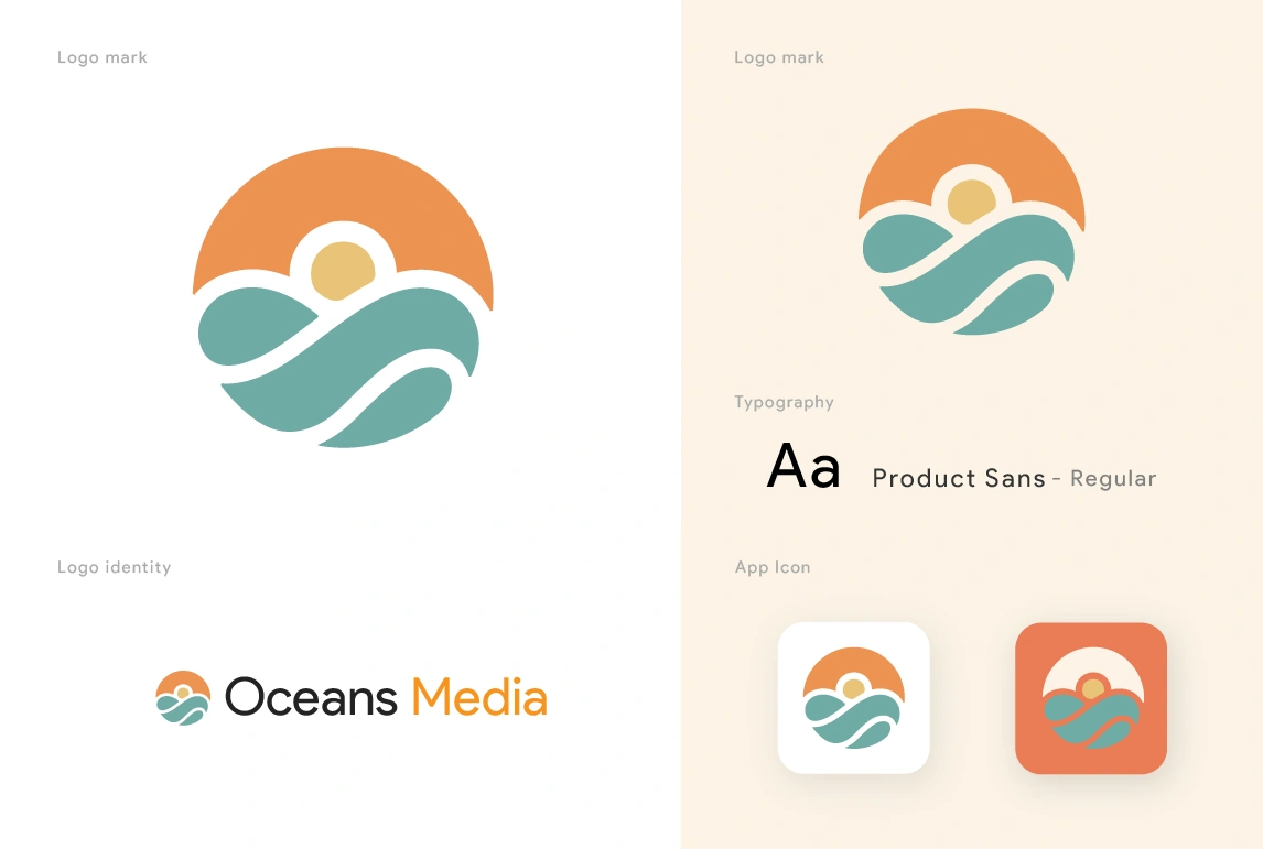 Coastal digital agency brand featuring wave-inspired logo mark. Professional brand system with ocean-blue color scheme.