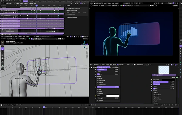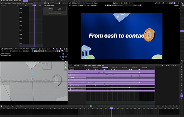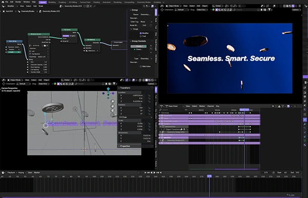 This project was fully created using Blender 3D for all 3D and 2D animation, lighting, text animation and compositing.No Al tools were used for visuals every asset and animation was manually crafted. Final editing, sound design, and color grading were completed in DaVinci Resolve. An Al voice-over was used only for narration. The concept presents a clean, futuristic take on digital finance,focusing on trust, interaction, and a seamless user experience.