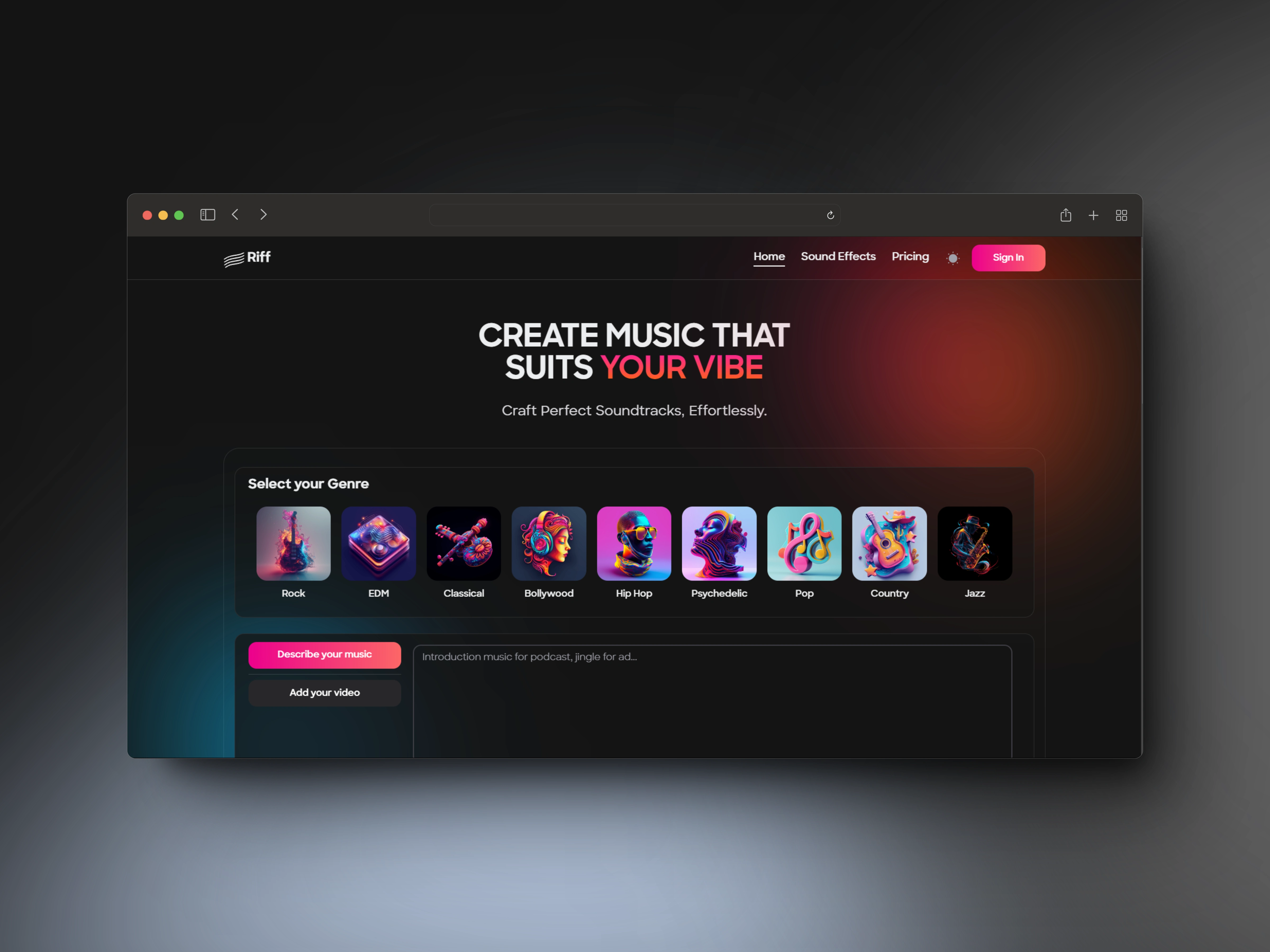 created whole UI and User Experience for desi-vocal AI-BASED audio creation platform and its subproduct named riff