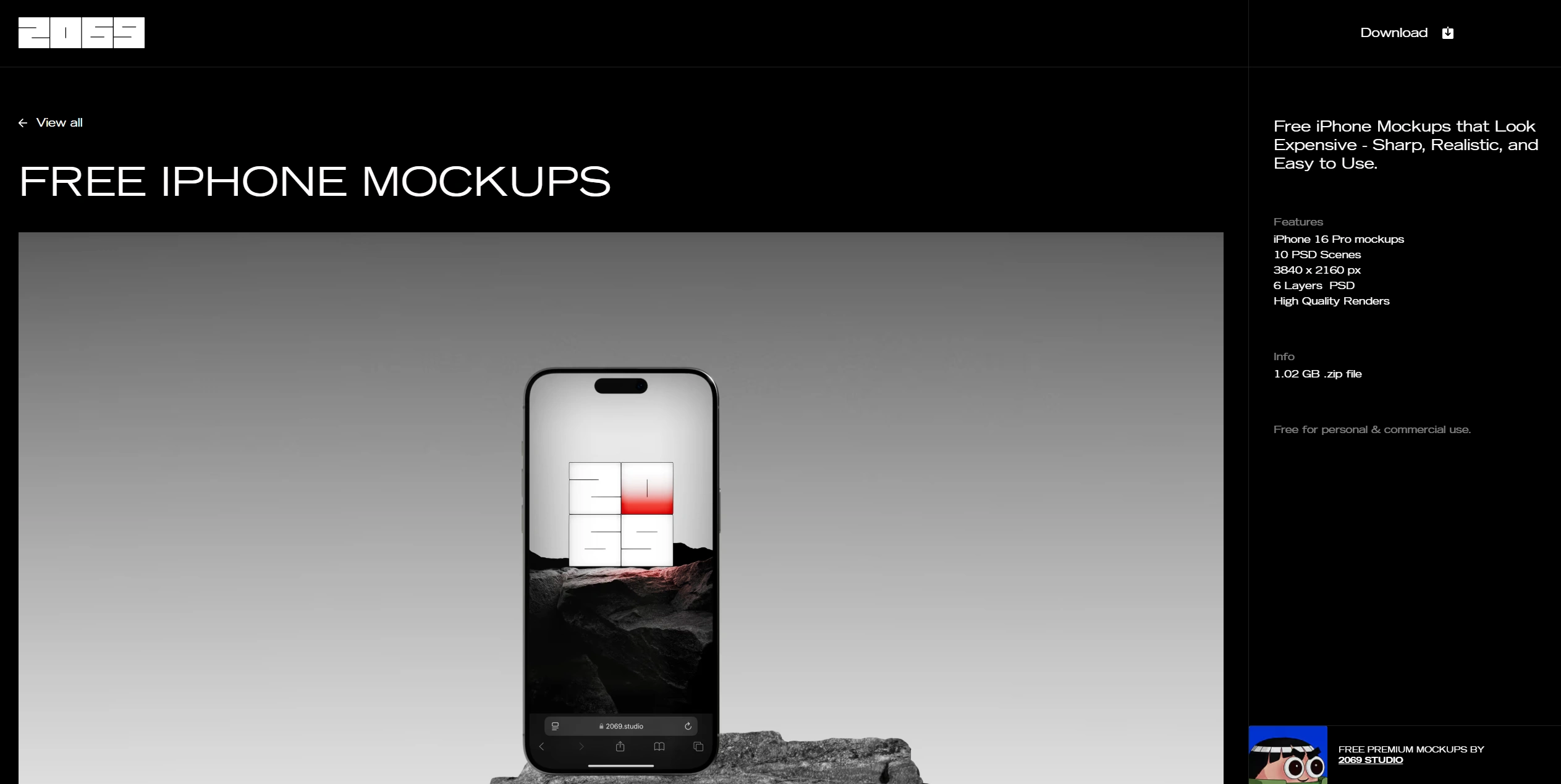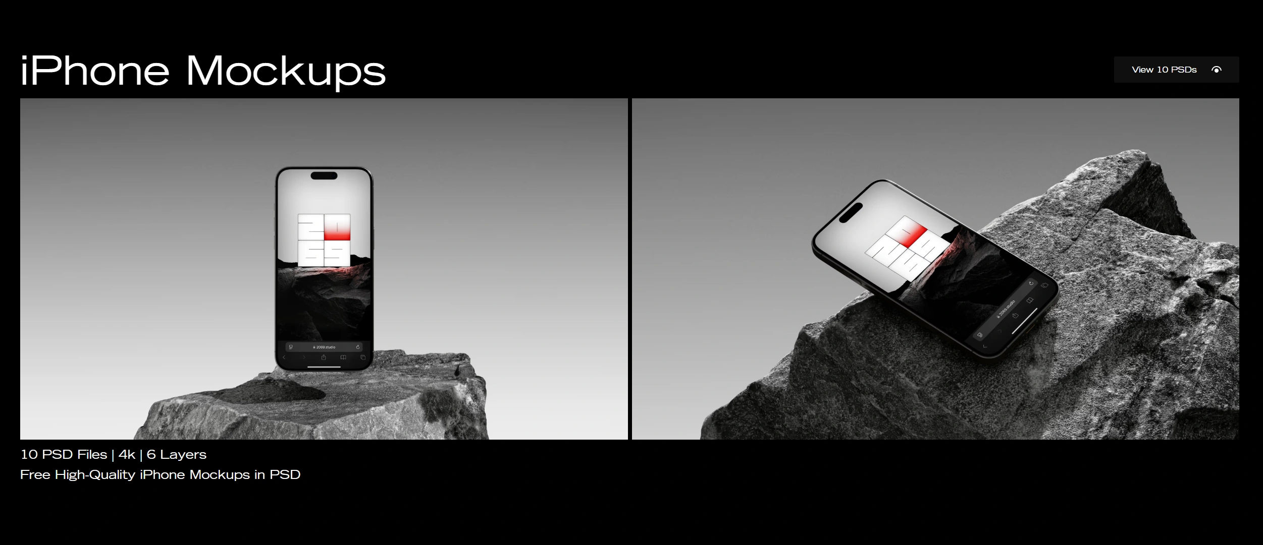 This section was designed to highlight the free iPhone 16 Pro mockup collection with a minimal, high-contrast layout. It presents product previews in 4K resolution, layered PSDs, and clear details for designers, keeping the experience sleek and easy to browse.