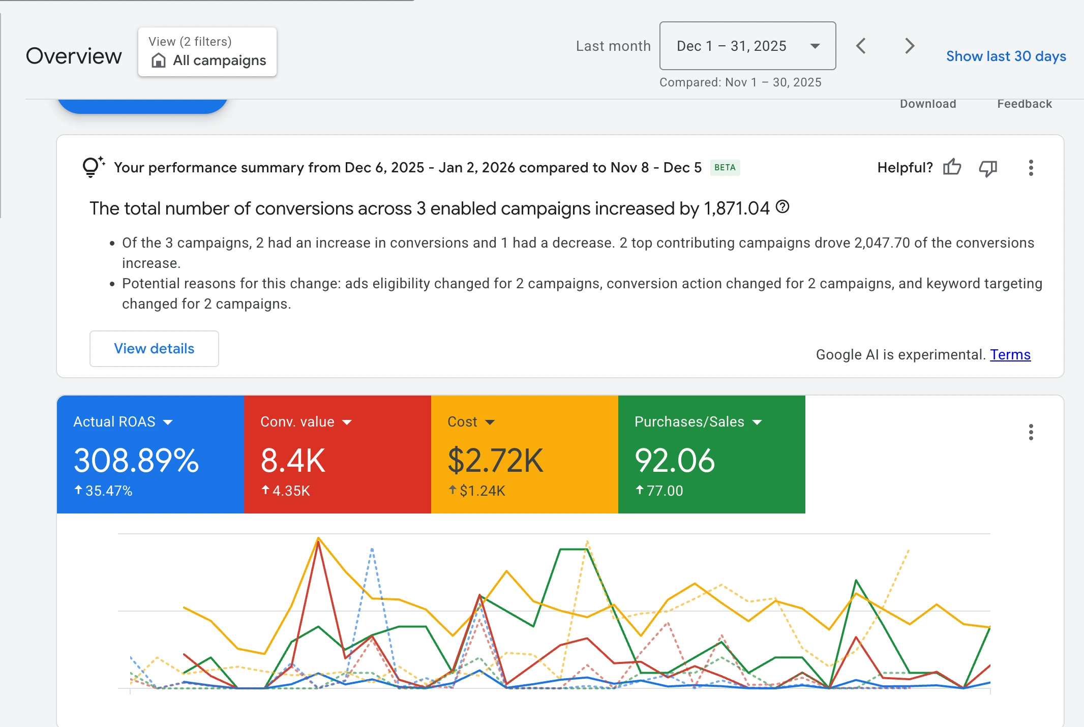 Blended Return of Ad Spend (ROAS) of 3 and acquisition of later-cycle converters, which turn into high Lifetime Value (LTV) subscribers.