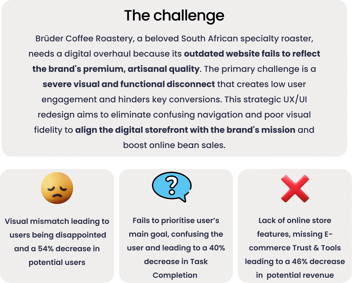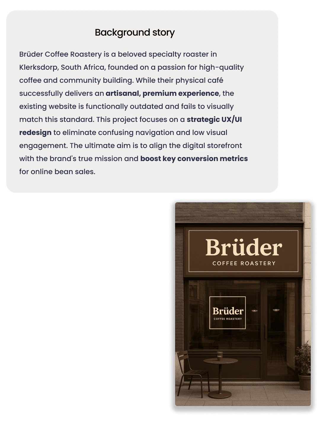 A strategic UX/UI redesign for Brüder Coffee Roastery with the goal of aligning the digital experience with the brand's premium, artisanal mission.
