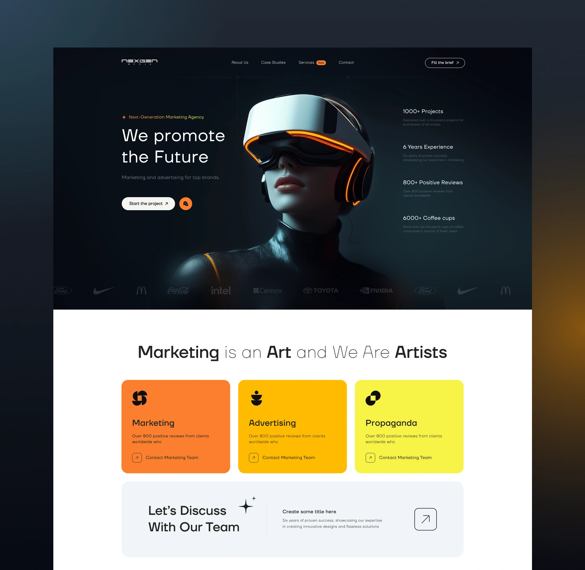 Designed a futuristic dark-themed website for a marketing agency built around the idea of promoting the future — bold visuals, dynamic layout, and sharp CTAs.