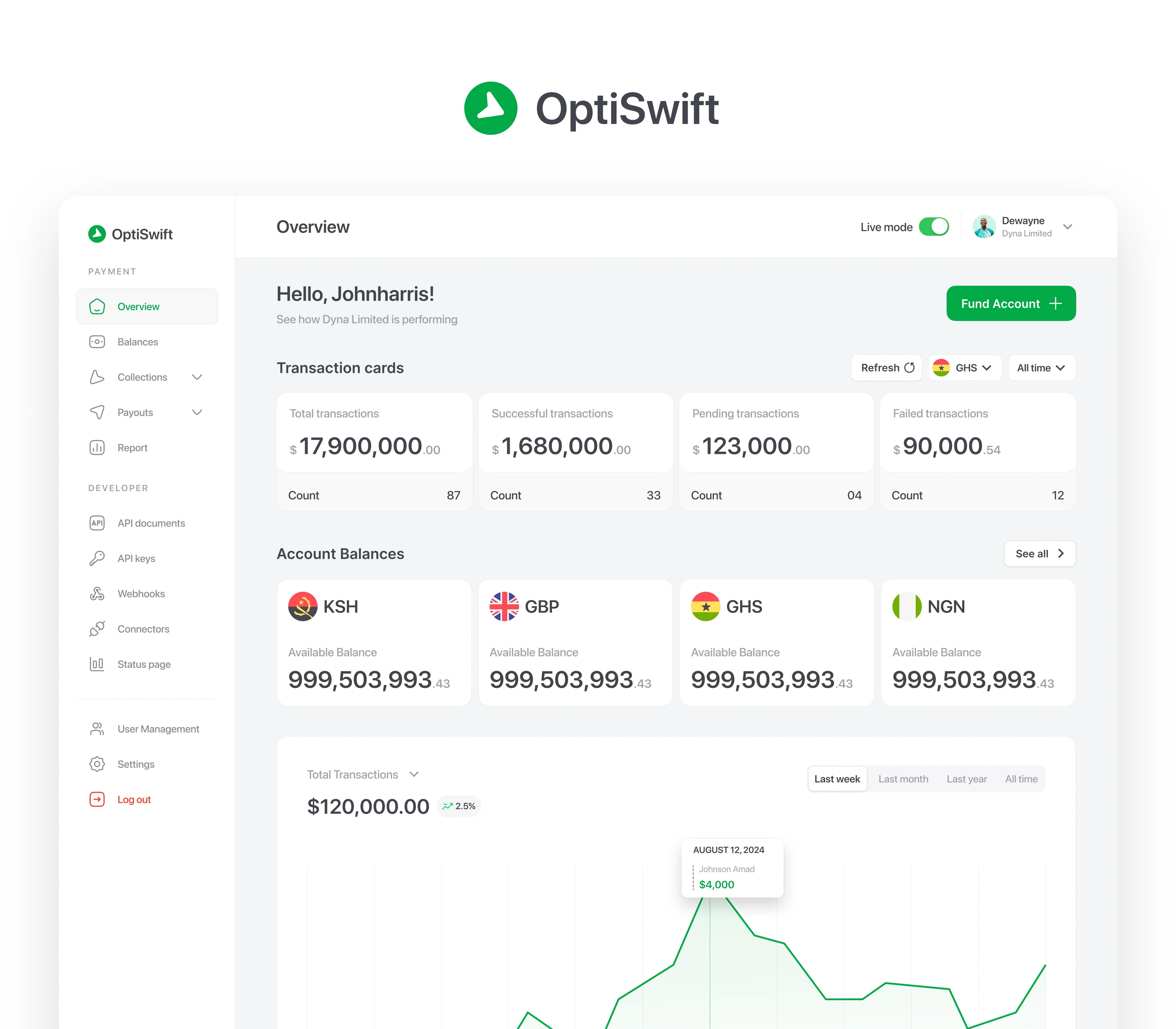 I led the redesign of the Optiswift fintech dashboard, a platform used by individuals and businesses to send, collect, and manage bulk payments.