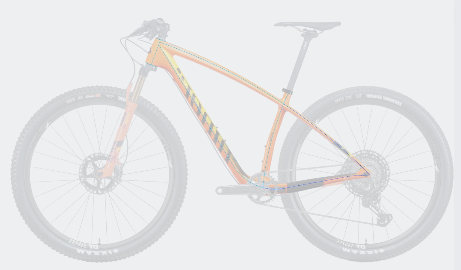Highlighted material transitions to tell the "story" of the bike’s carbon engineering.