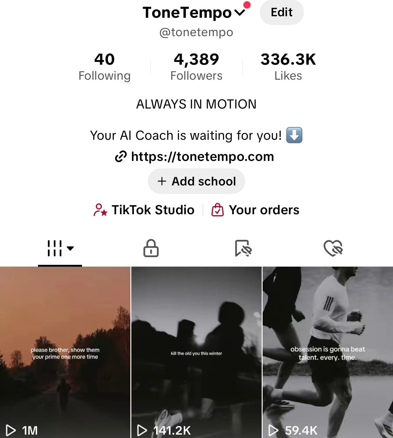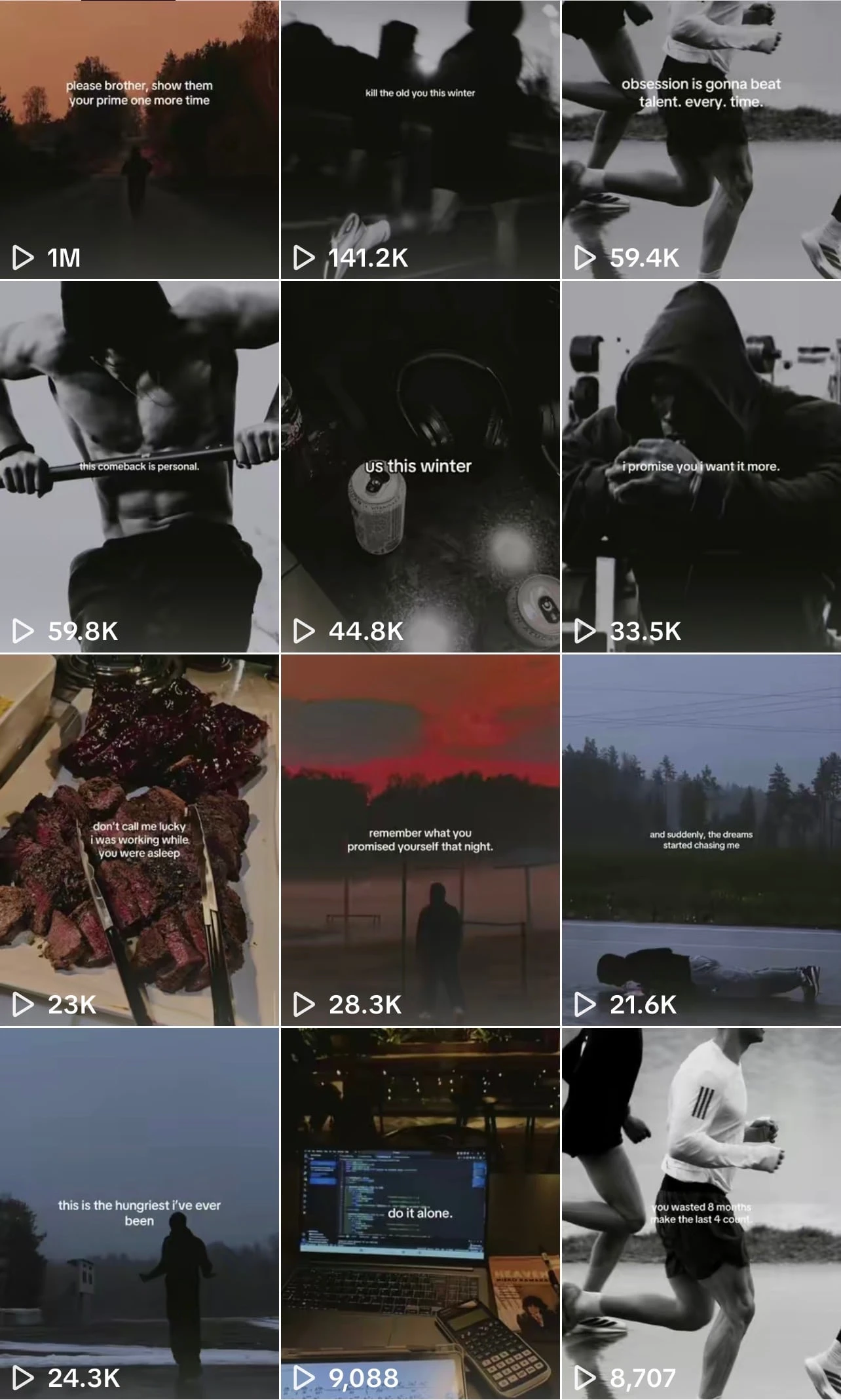 My whole premise was to grow the brand in the workout/motivational niche, from 0 to at least 1,000 followers so that we can insert the website link without needing to be a business account. My idea was to take an already working format, tweak it to our styling, and replicate it. Combined with fast cut edits & thematic effects, I was able to achieve success in less than a month of working with the account.