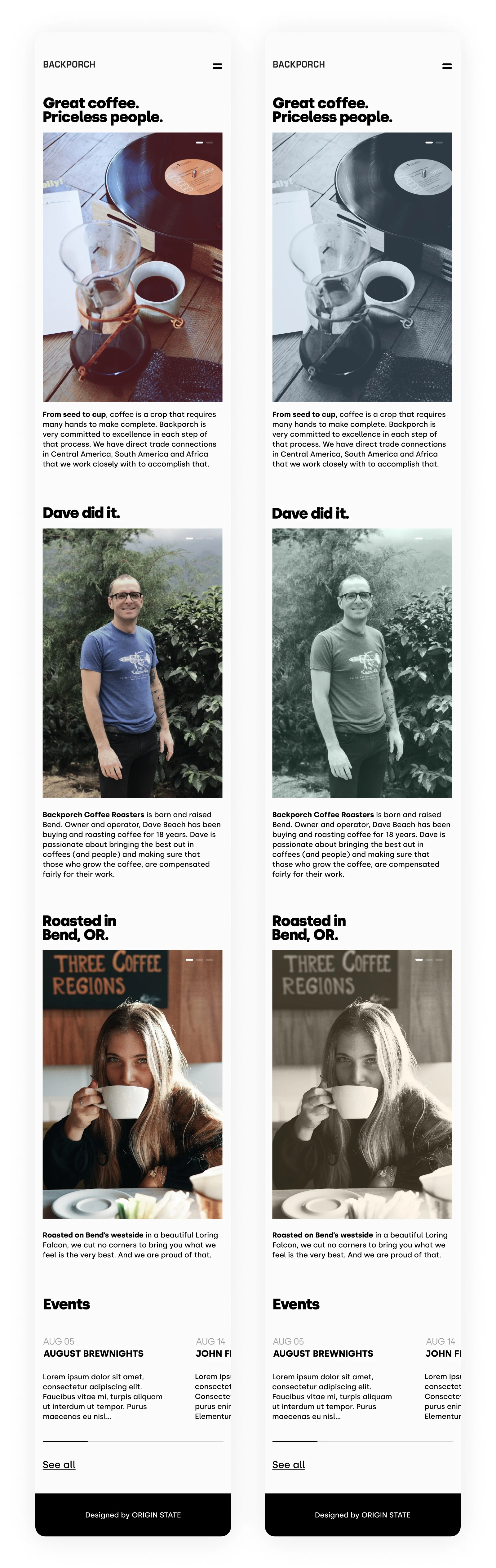 * This is only a concept and is not currently live in any capacity. Go buy some of their coffee at www.backporchcoffeeroasters.com