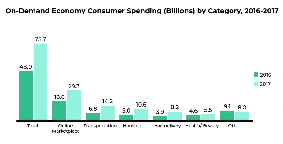 Startups that offer users to get their house chores and stuff like repairs done by professional (or at least enthusiastic) people found online are becoming mainstream. The popularity of such applications didn’t come as a surprise since they resolve obvious problems known to literally anyone, and they do that at reasonable prices, usually within a short amount of time. This sector includes any application that brings together one person who’d like to dedicate a task to another, except for the delivery ones, which require a stand-alone classification. Examples of mobile apps working in this sector are getTOD, Handy, and TaskRabbit, which provide a wide variety of services to order: these are basically marketplaces that display local labor demand and match it with freelance workers. This on-demand service sector highly relies on the talent pool, which can be quite challenging to attract, so in this case, app owners have to set their primary focus on freelancers, not clients.