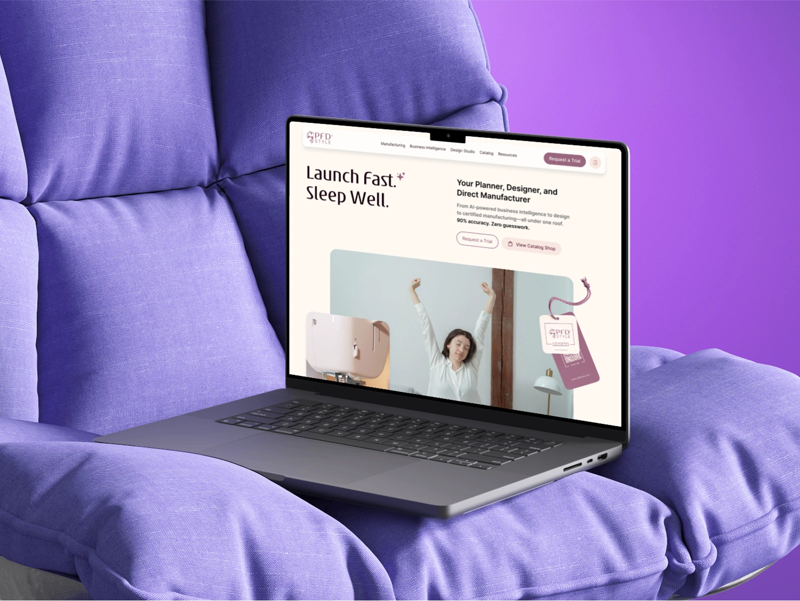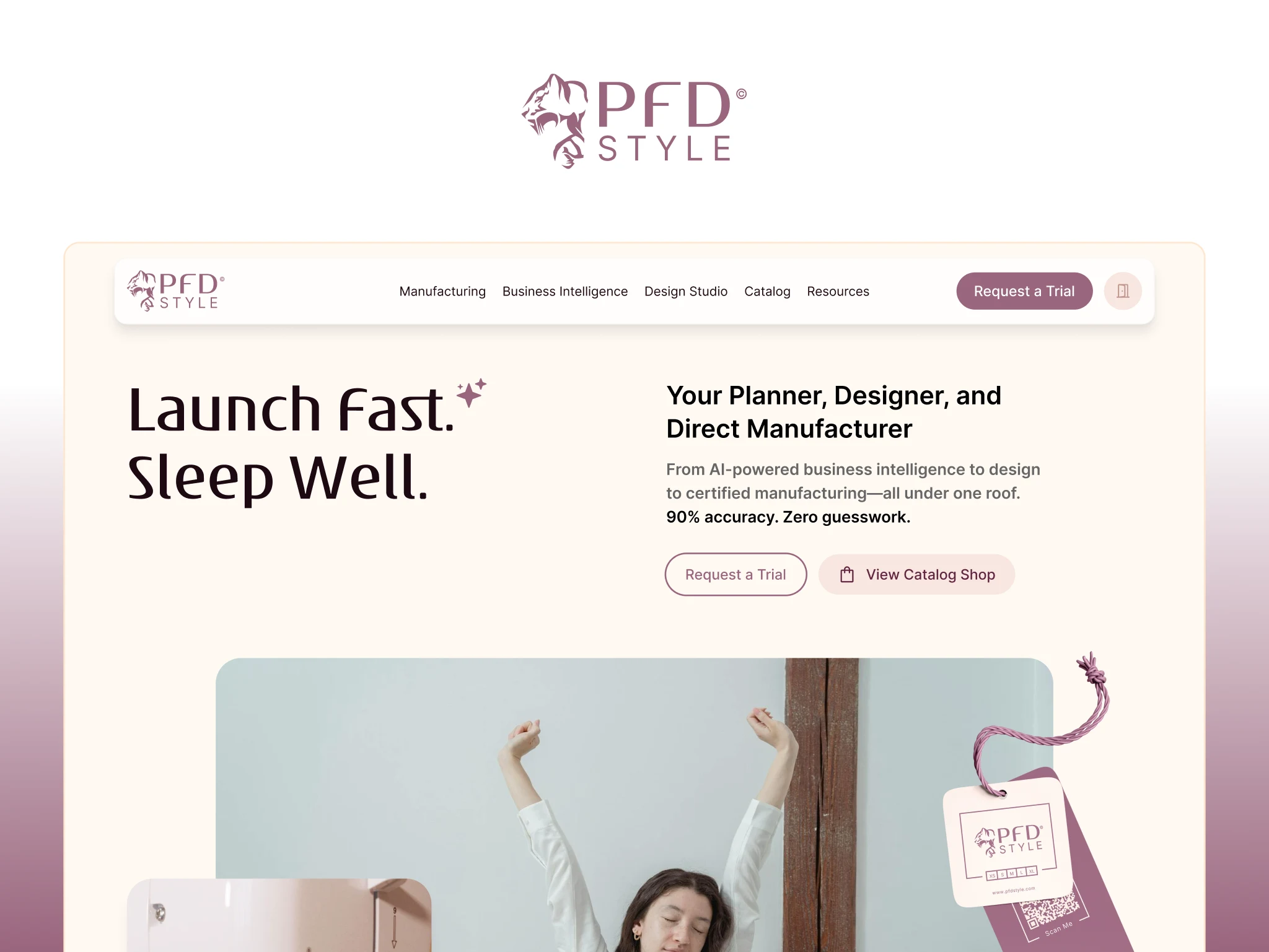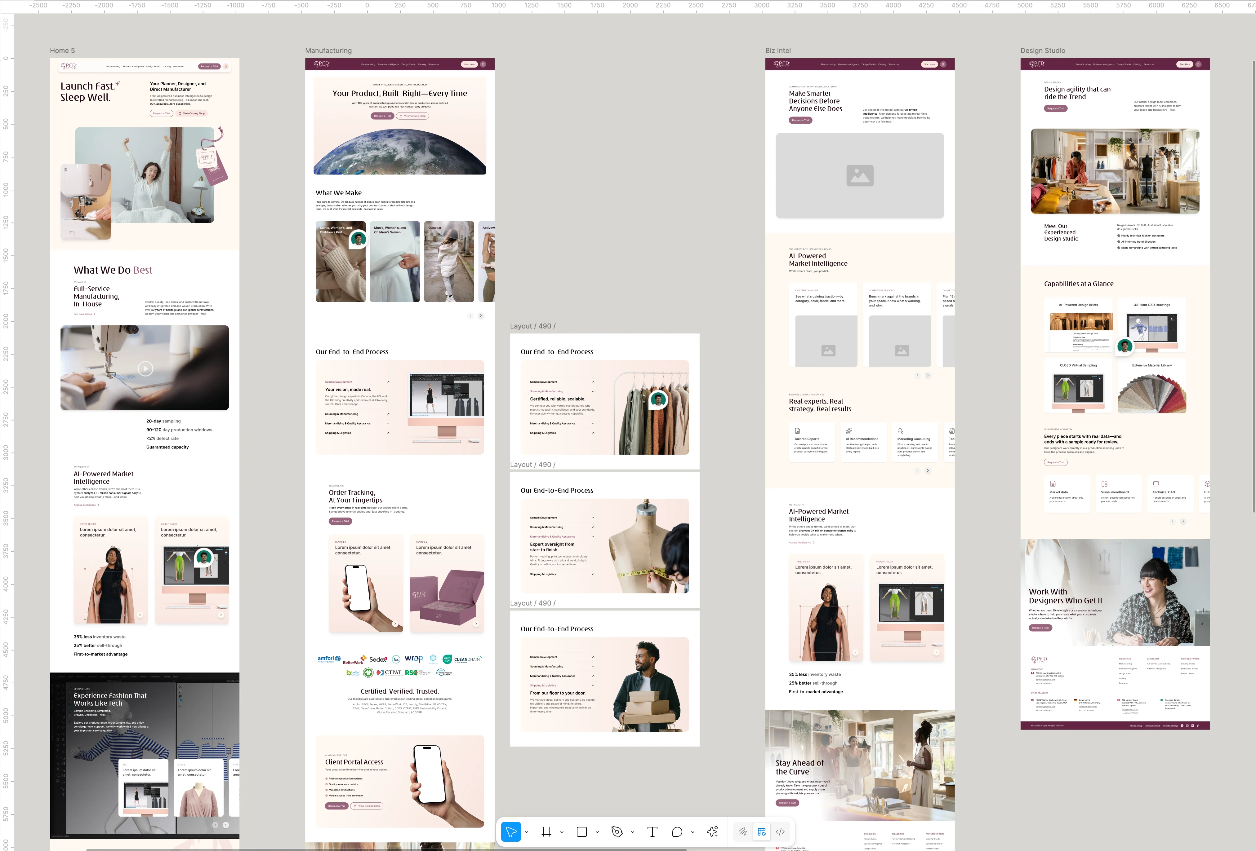 Refreshed PFD Style’s brand and designed 8 pages showcasing manufacturing, AI-powered insights, and design studio services using Figma.