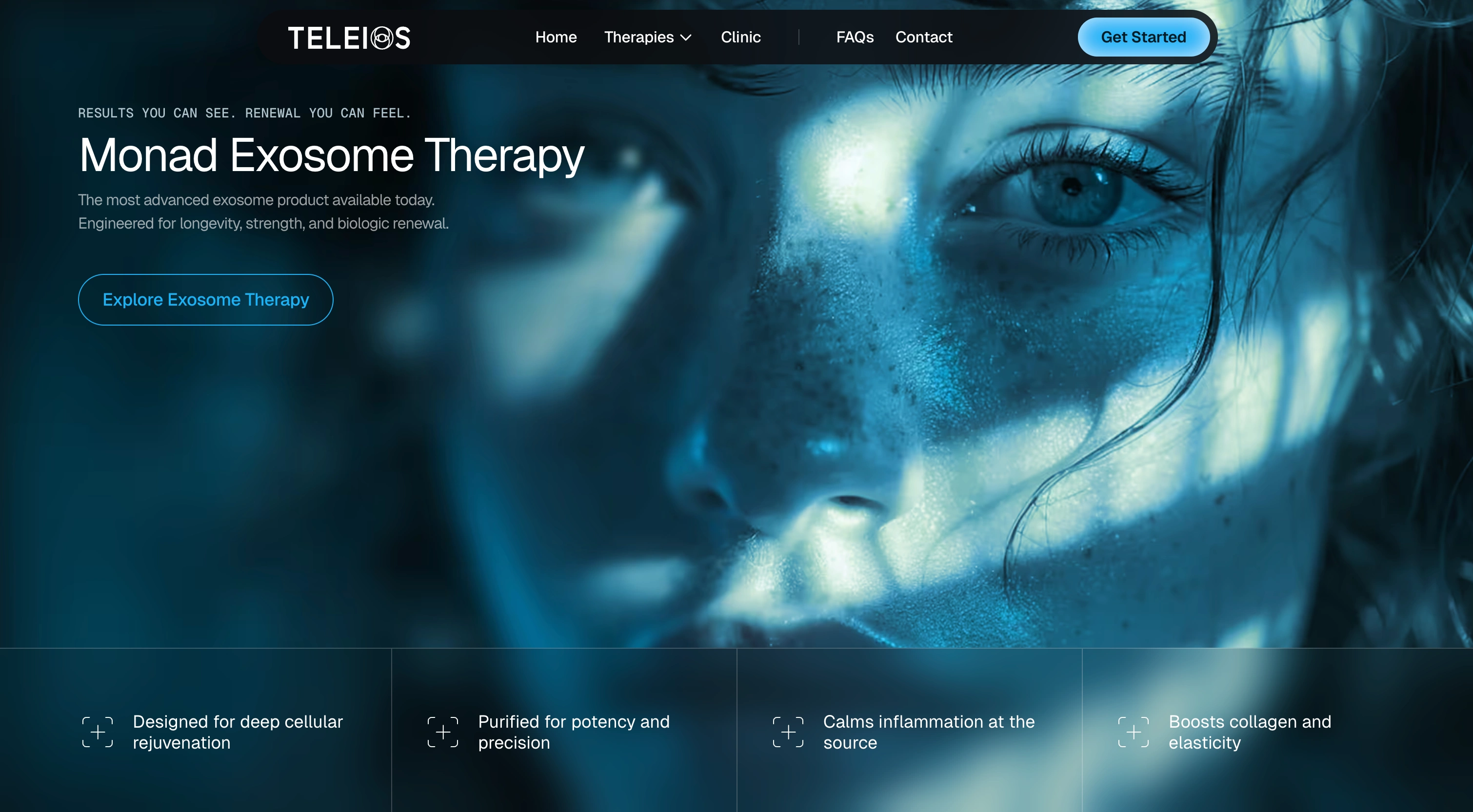 Teleios Health sells exosome and gene therapy products for their regenerative properties. This was a collaboration with the agency Myosin.