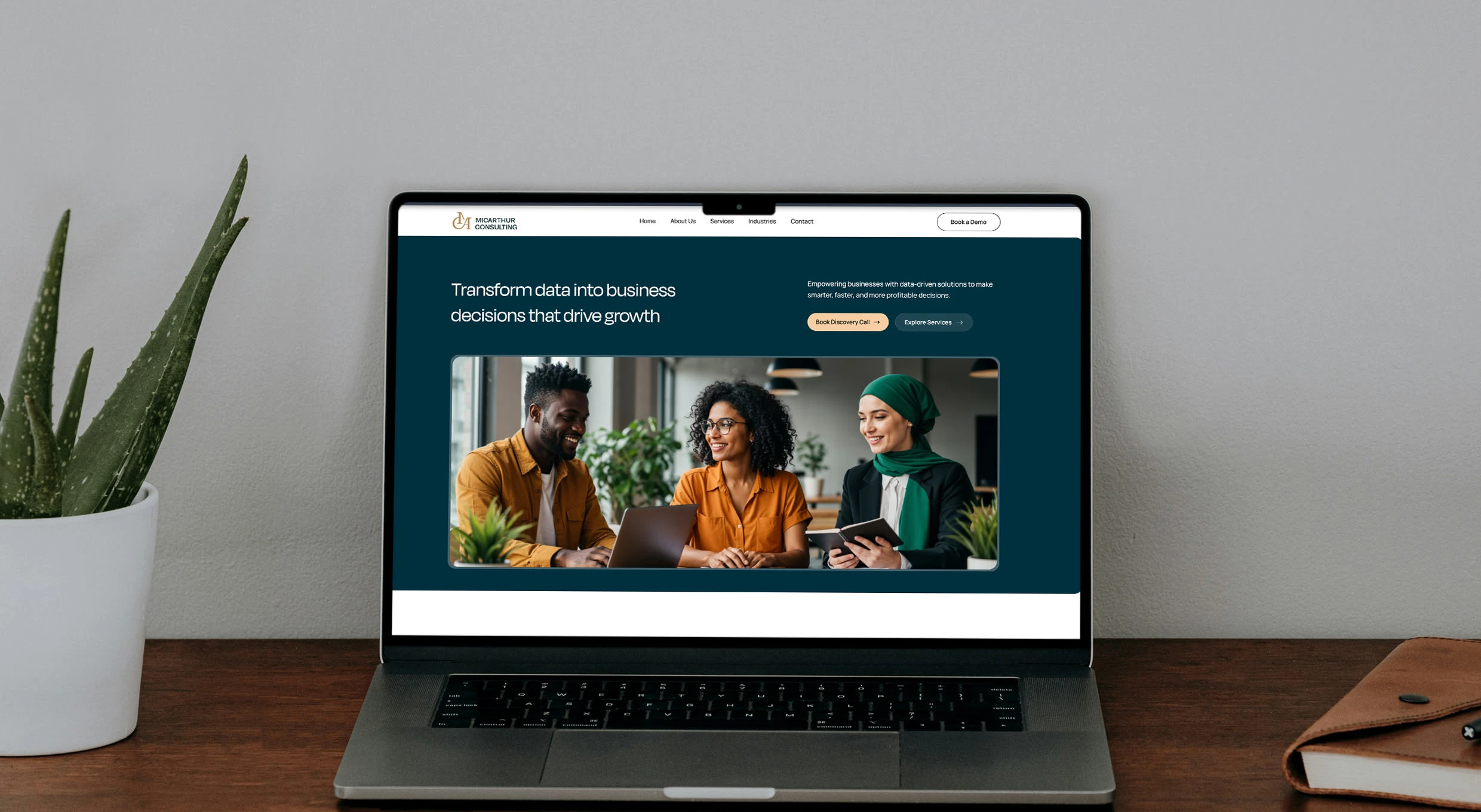The full system included brand guidelines, mockups, and a Webflow website, positioning Mic Arthur Consulting as a trusted, future-focused partner in analytics and strategy.