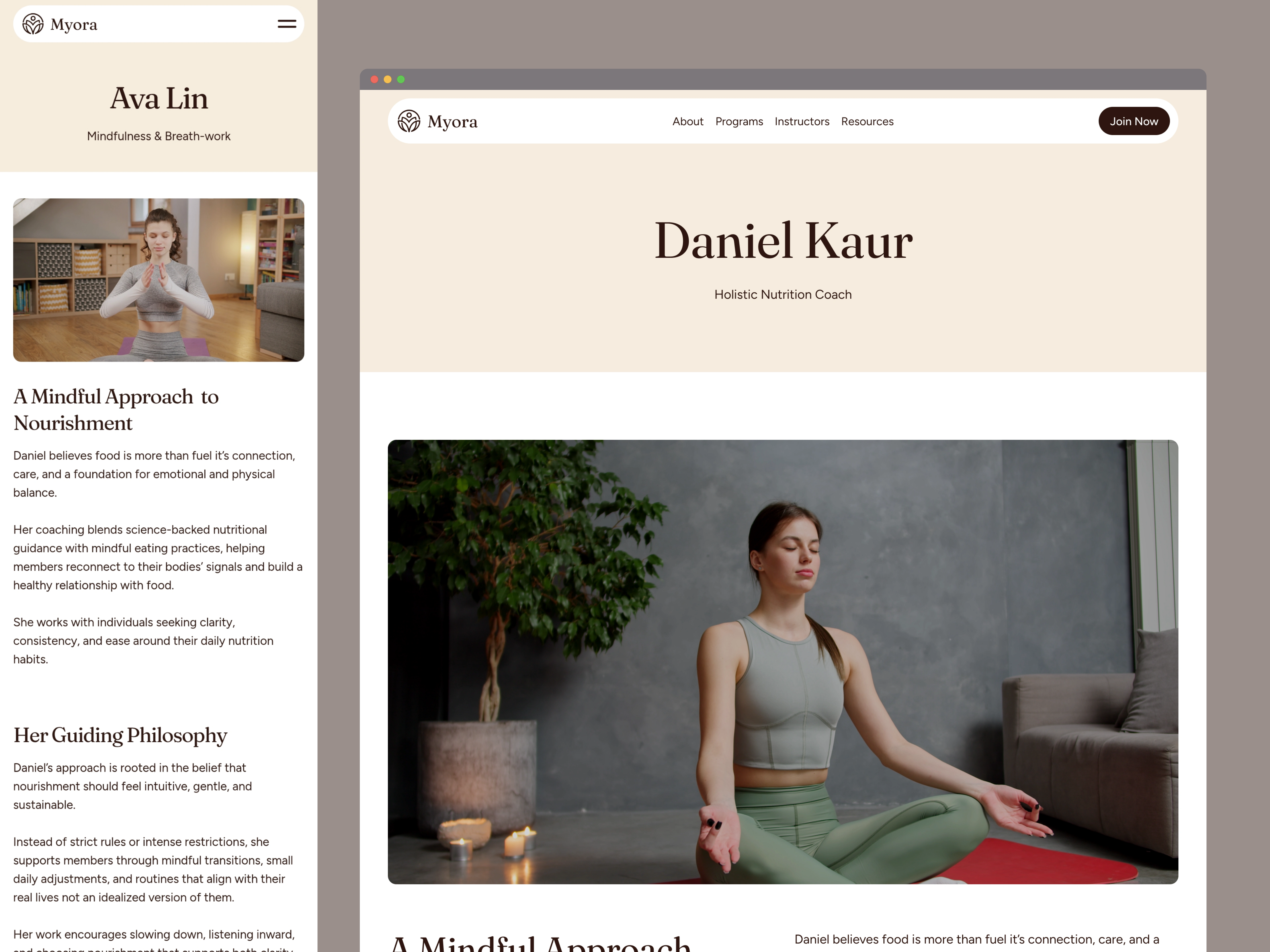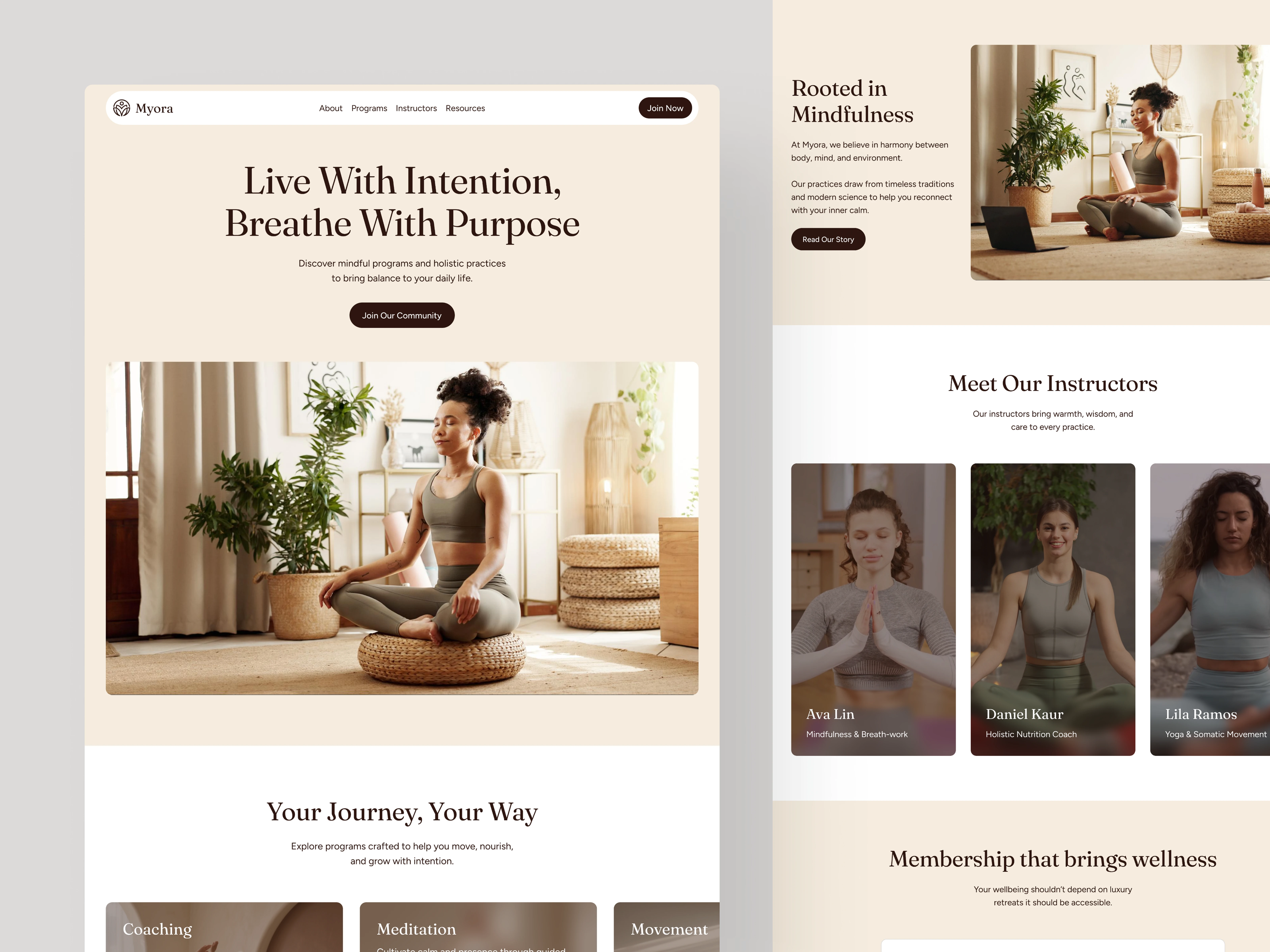 Crafted with premium UX, subtle animations, and clean editorial design, this template makes it easy to showcase programs, instructors, classes, workshops, testimonials, and wellness content with clarity and intention. Whether you’re building a yoga studio website, a holistic coaching platform, or a mindfulness membership experience — Myora gives you a polished, high-end foundation that elevates your brand and converts visitors into members.