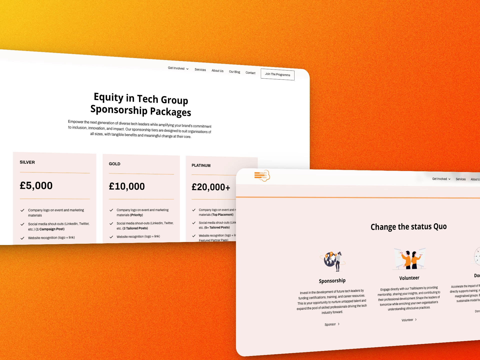 The finished website gave Equity in Tech Group a fully functional digital presence that effectively communicates its mission and makes it simple for visitors to take action - whether donating or applying for the programme.