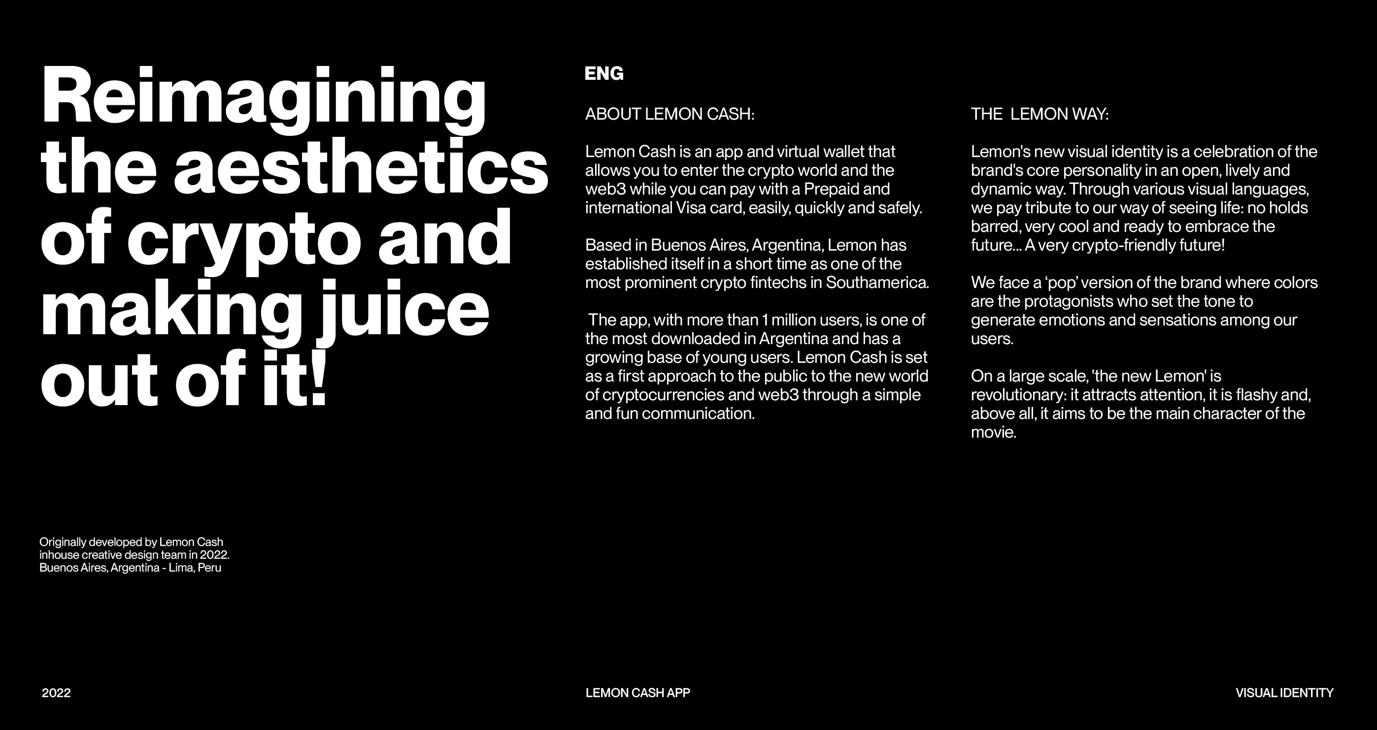Making crypto sexy, pop, and friendly: This was the main DNA of Lemon Cash visual identity, Argentina's most downloaded crypto app.