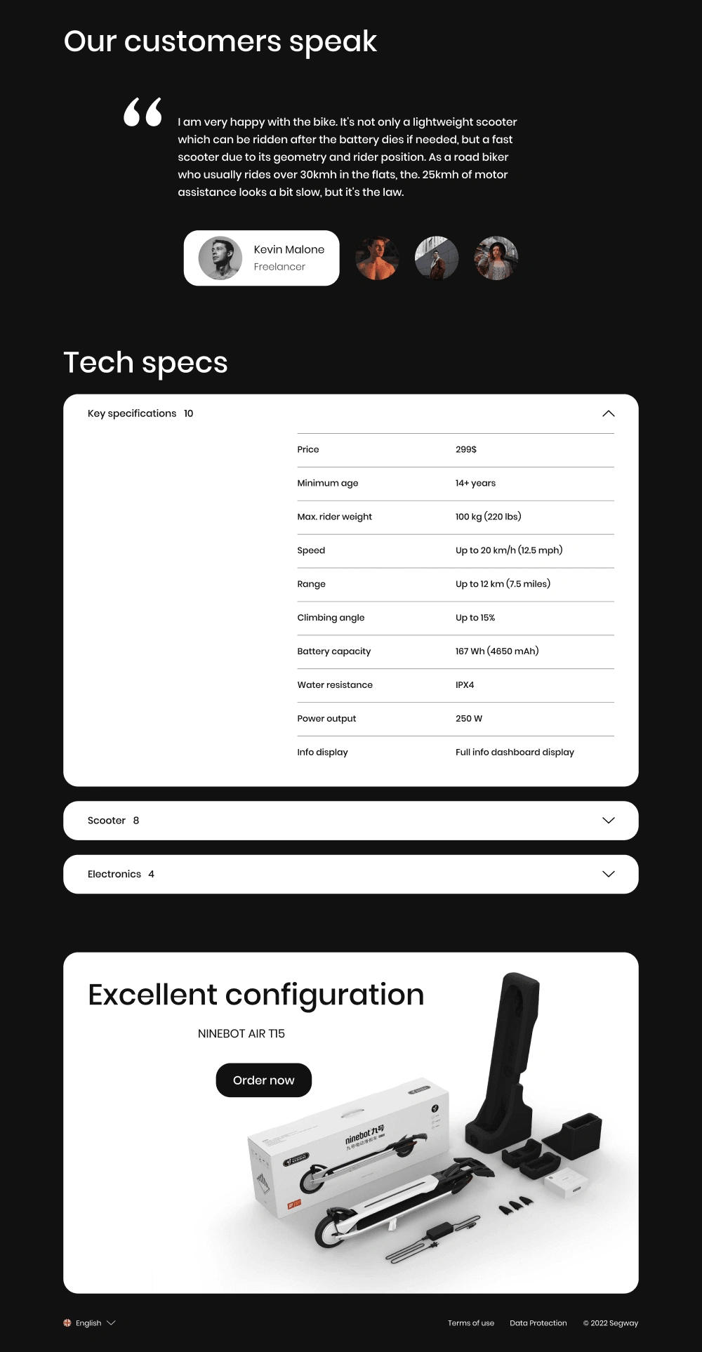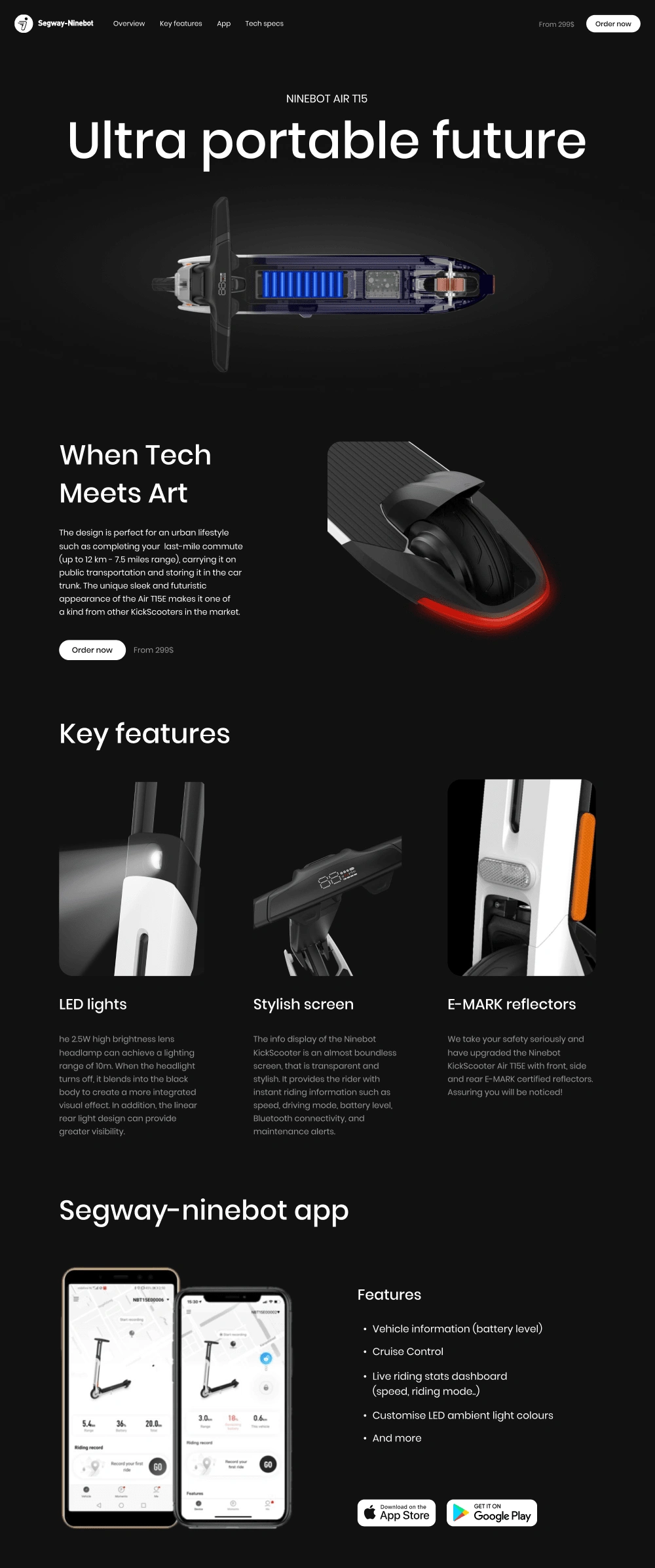 This is my redesign concept for Seegway electric scooter website, The idea was to create a simple but stylish landing with great photos of the product