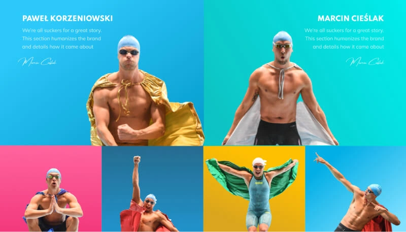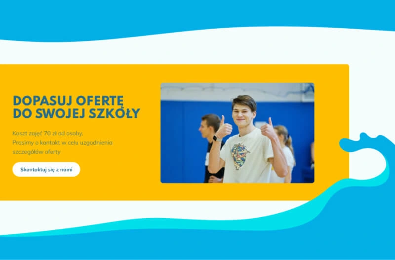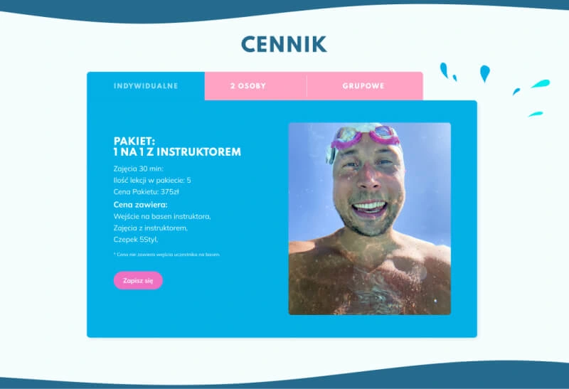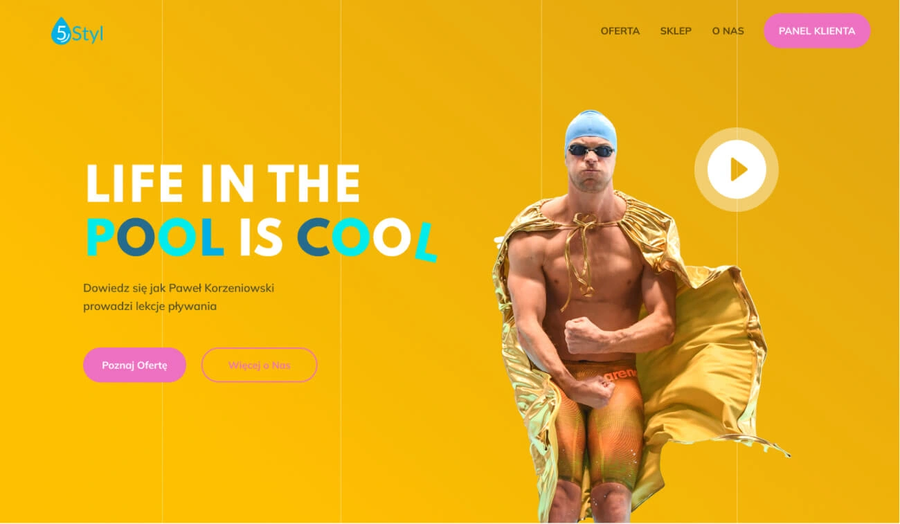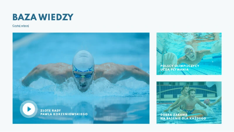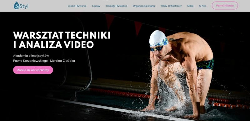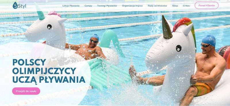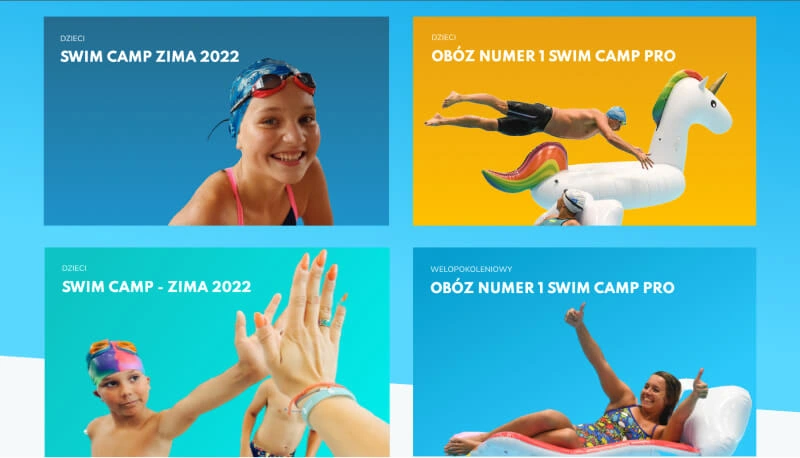 UX/UI design for a Polish Olympic team's swim school website. It showcases fun, effective swimming classes and camps for kids and adults.