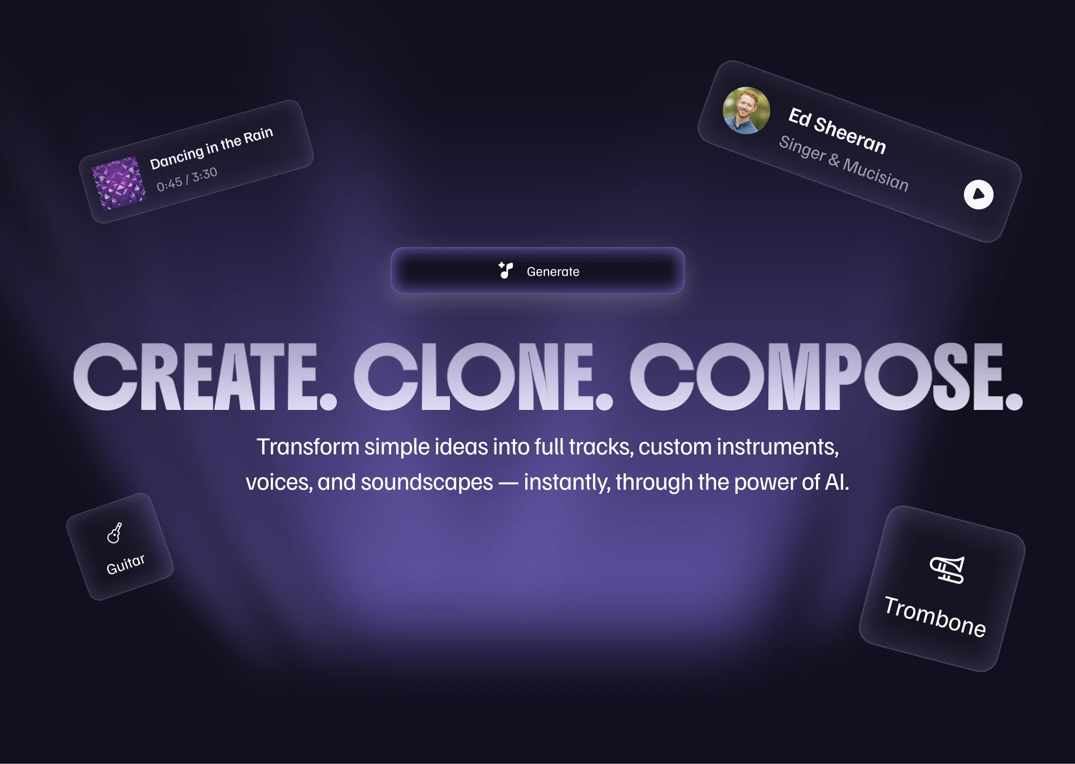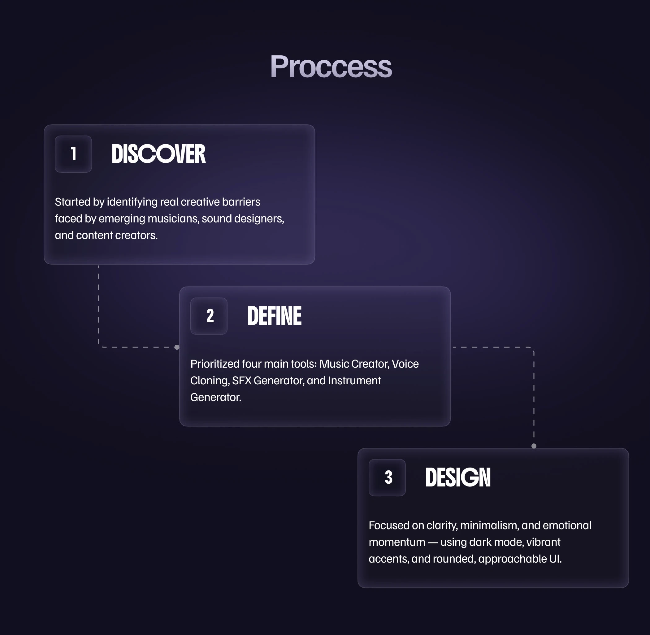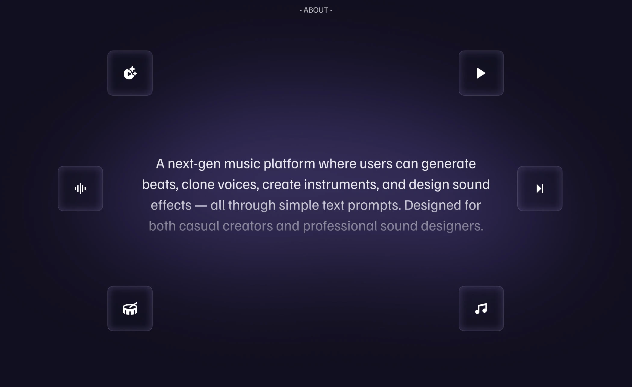 A next-gen music platform where users can generate beats, clone voices, create instruments, and design sound effects — all through simple text prompts. Designe…