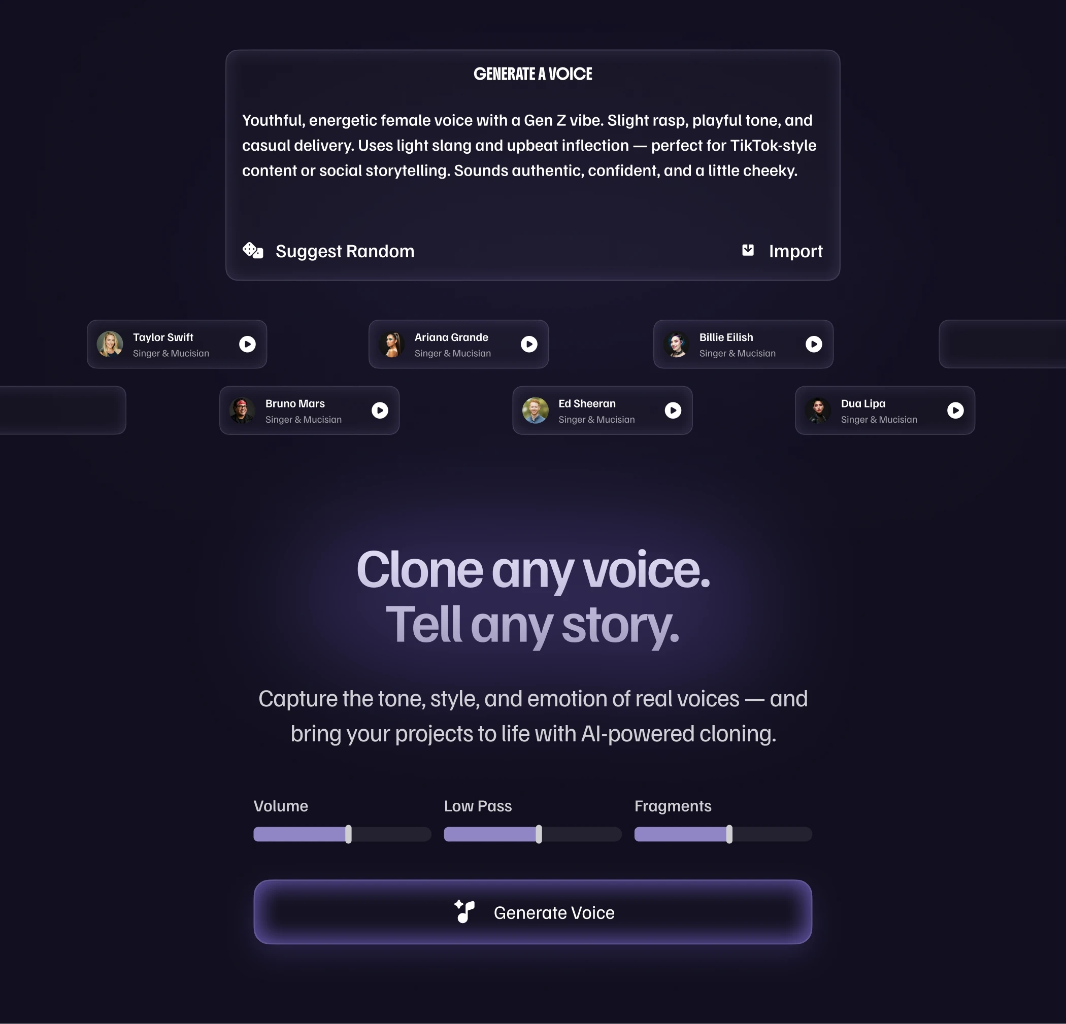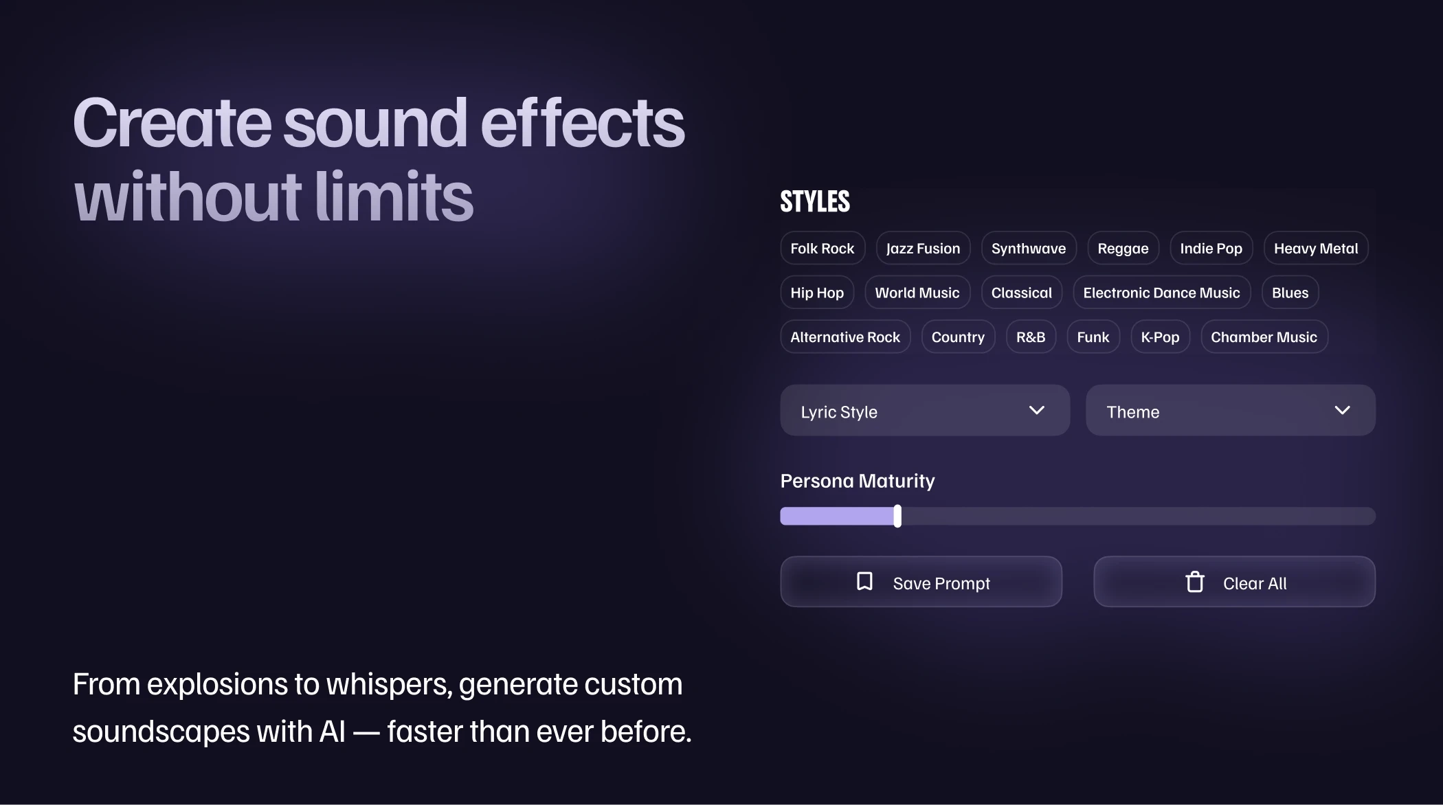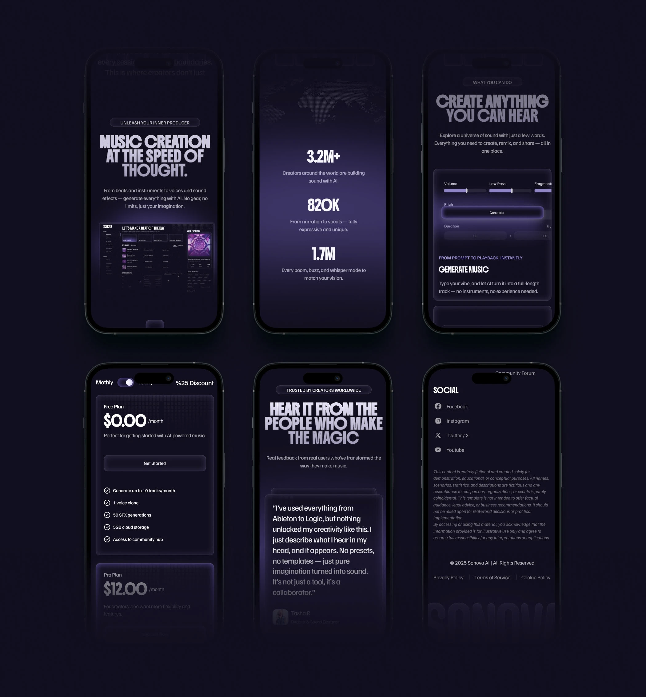 A next-gen music platform where users can generate beats, clone voices, create instruments, and design sound effects — all through simple text prompts. Designe…