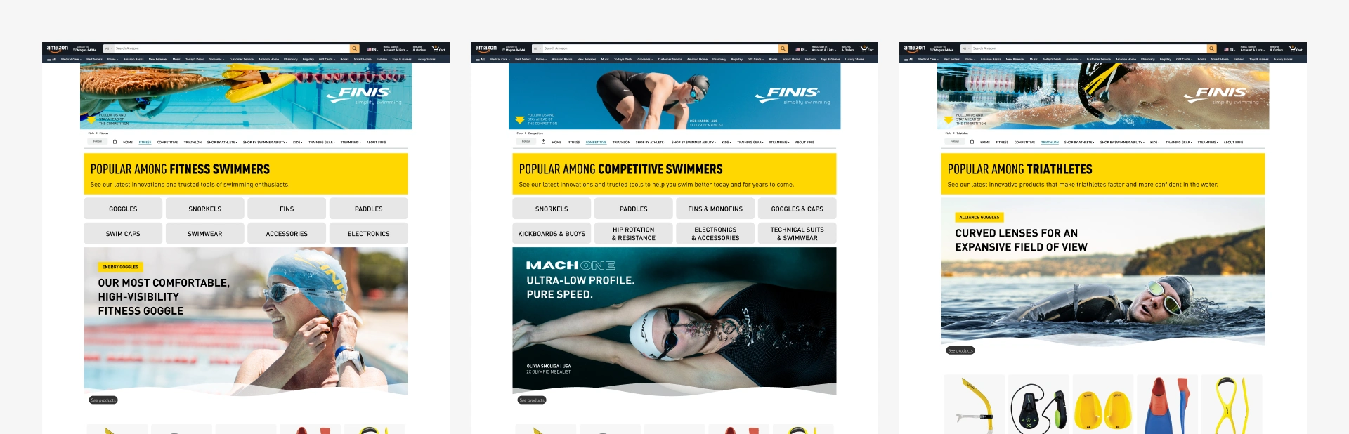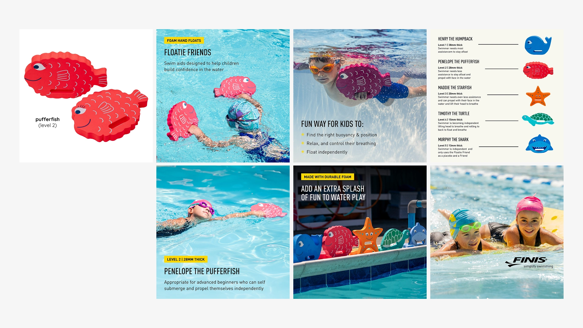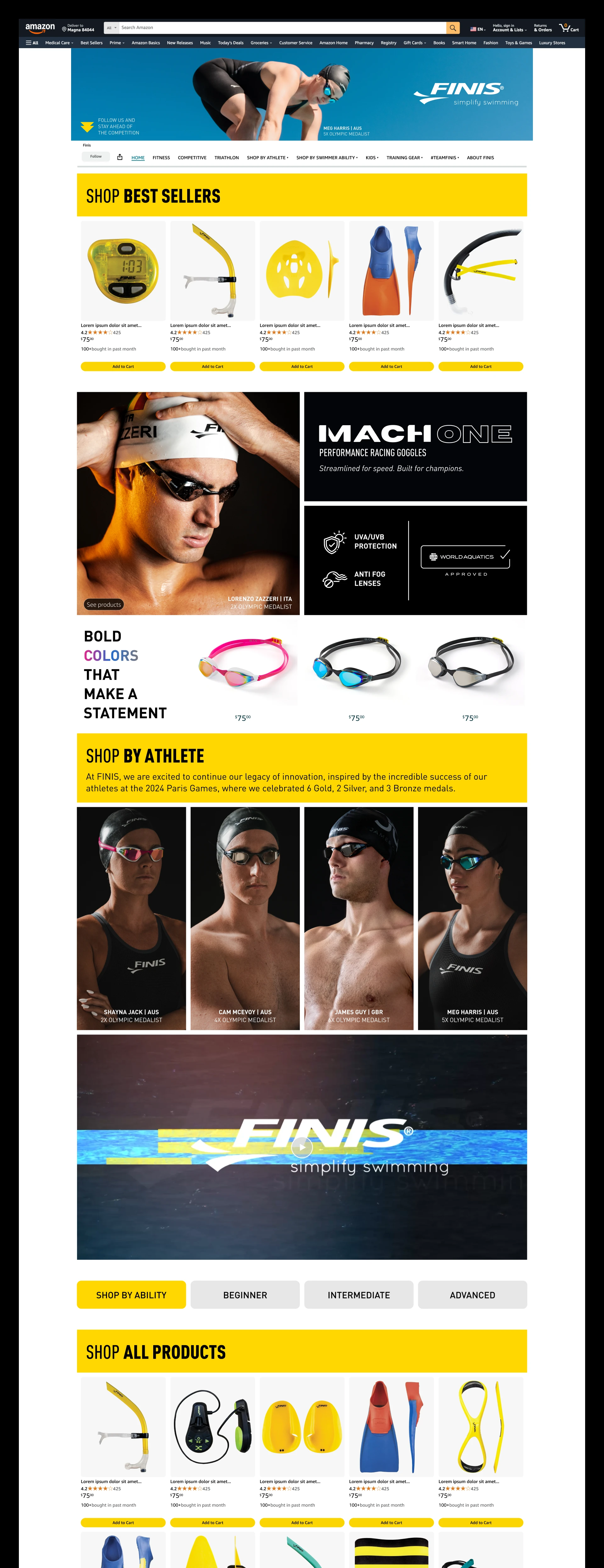 FINIS wanted to update some of their Amazon creatives, inspired by the incredible success of their athletes at the 2024 Paris Games, where they celebrated 6 Gold, 2 Silver, and 3 Bronze medals. Alongside this, is the launch of their new products—Mach One Racing Goggles and Floatie Friends.