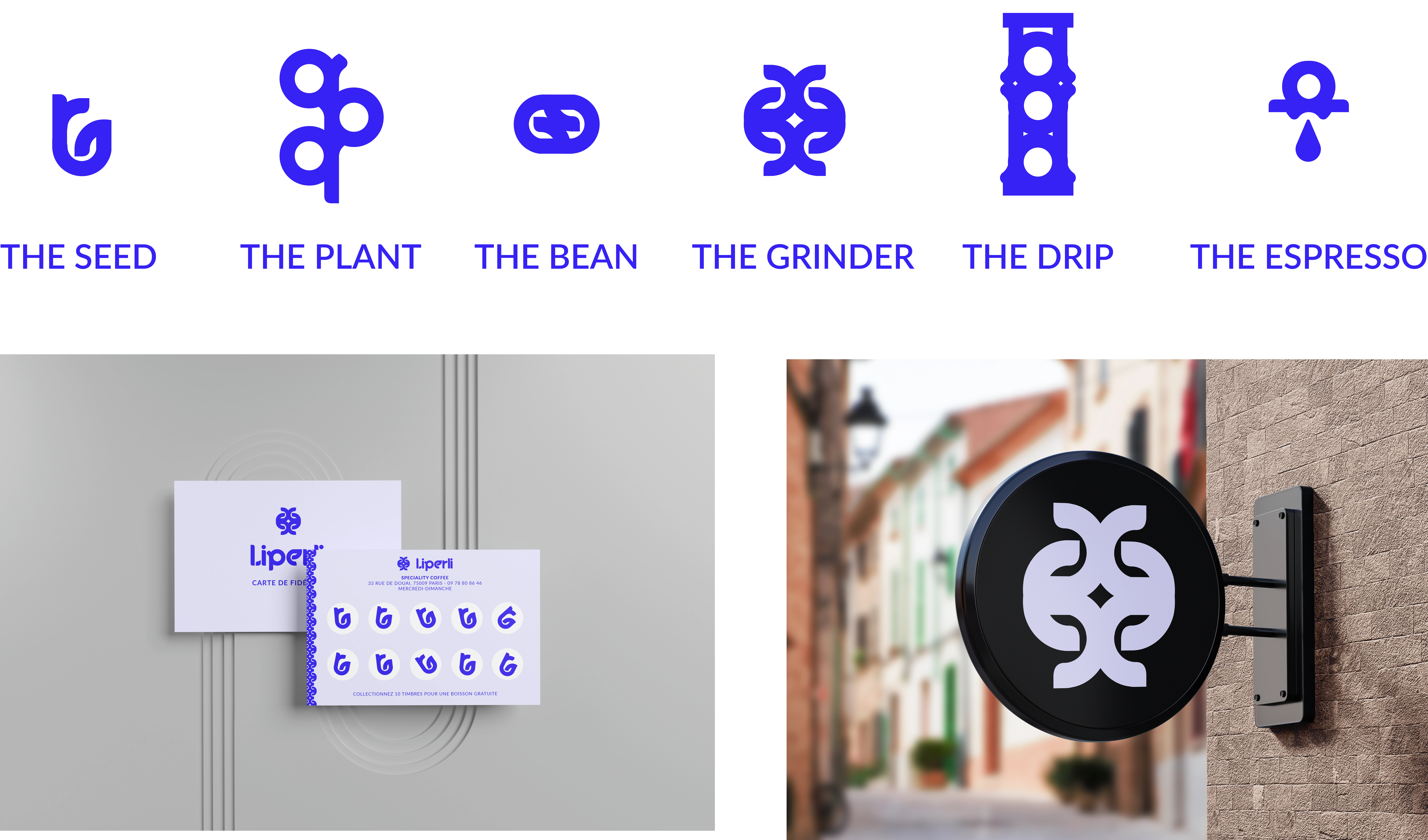 This is a fun, personal project for one of my favourite cafés in Paris. I was super inspired by the owners, the café they have established, and the passion behind their craft. I created a wordmark logo and used those shapes to create a logo set demonstrating the full process from the bean to espresso.