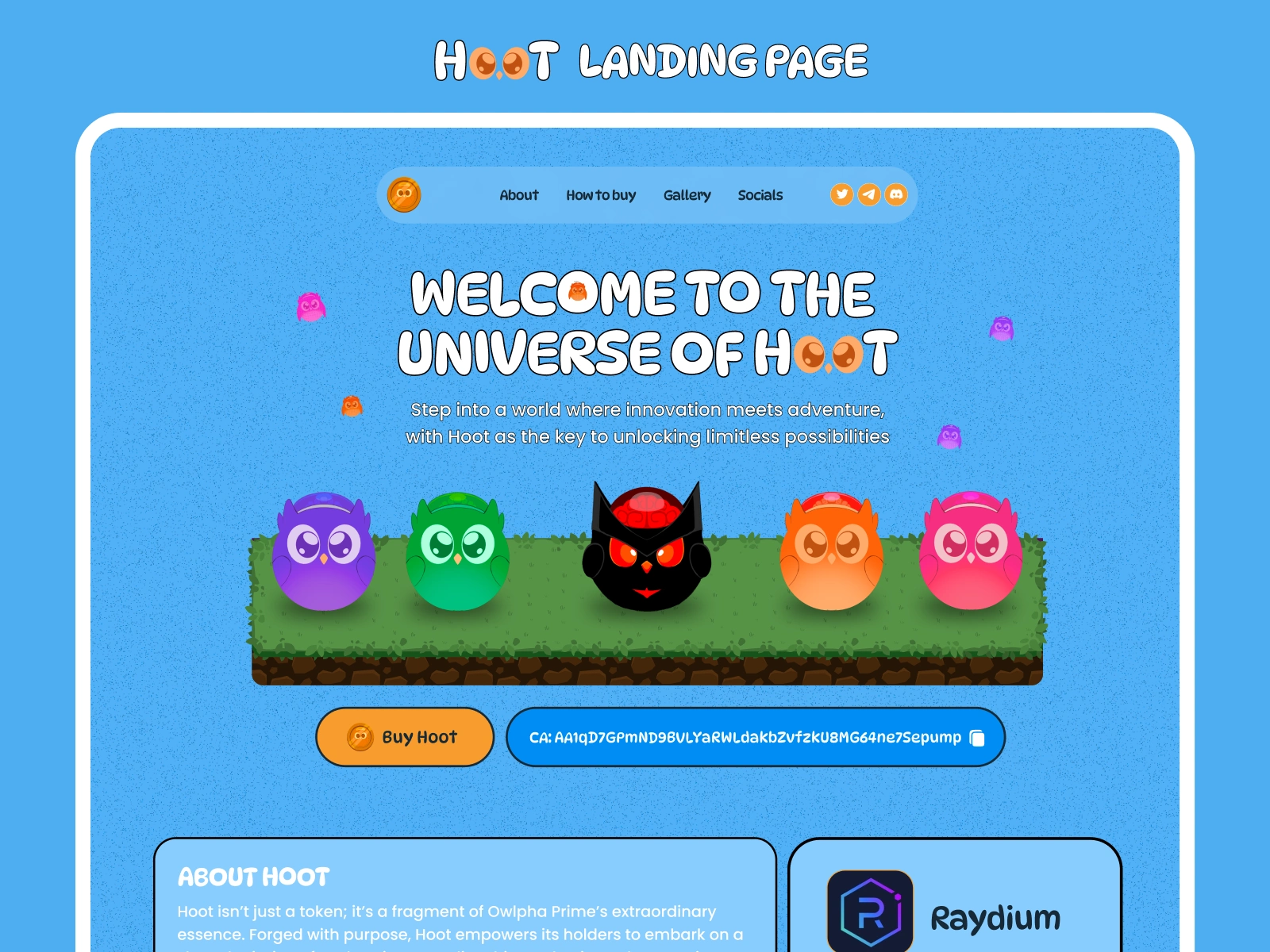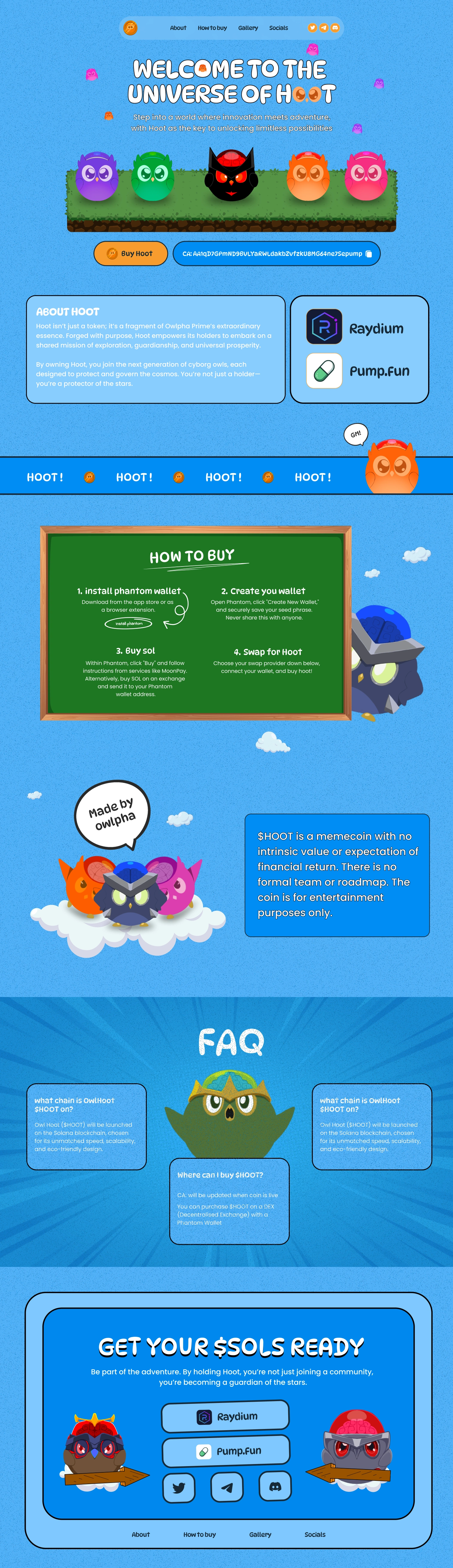 Landing page for a memecoin page called HOOT