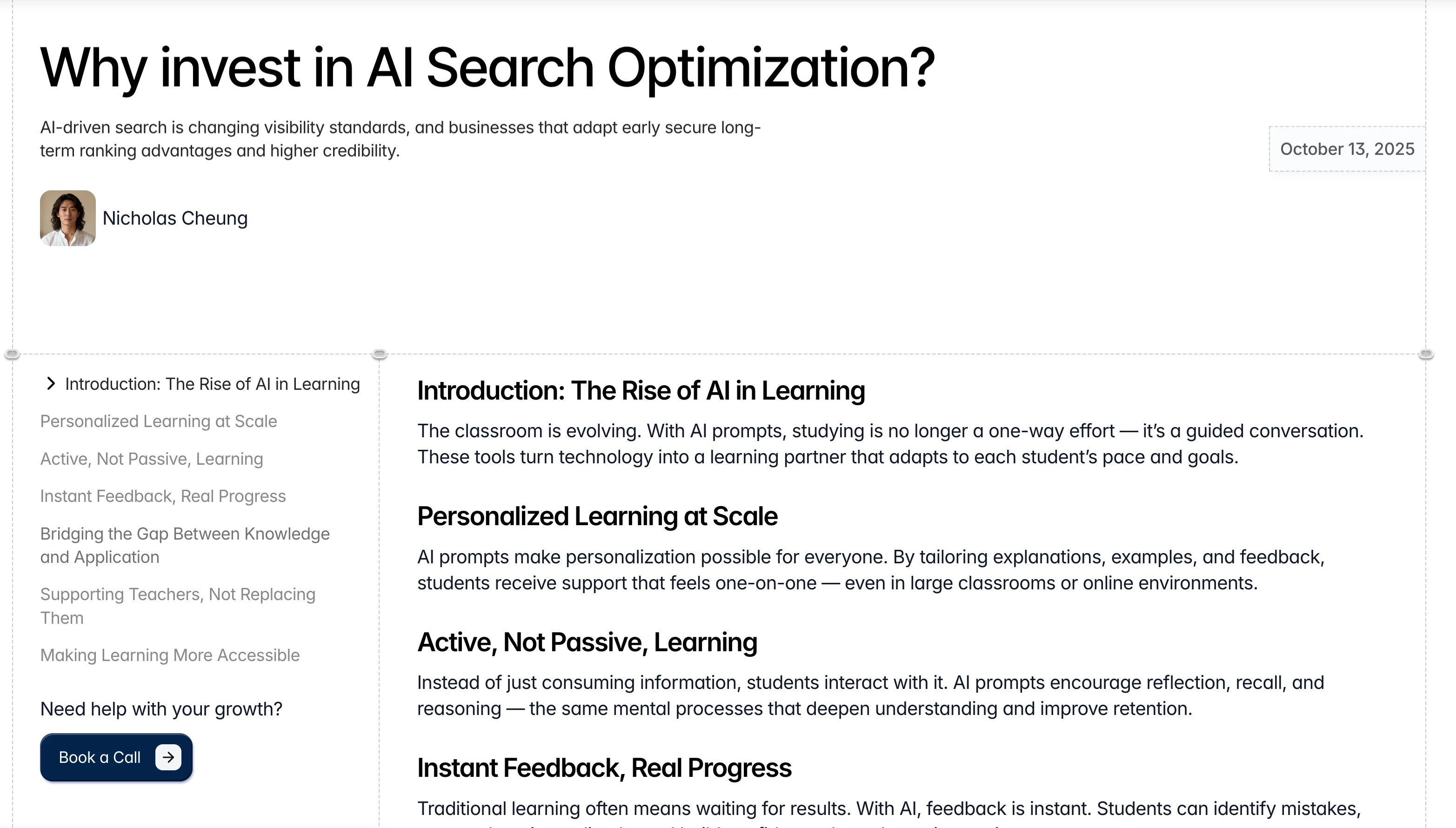 A structured content hub designed to support long-form SEO articles without feeling like a wall of text. Clean typography, table of contents, strong spacing, and a layout that makes reading feel effortless.