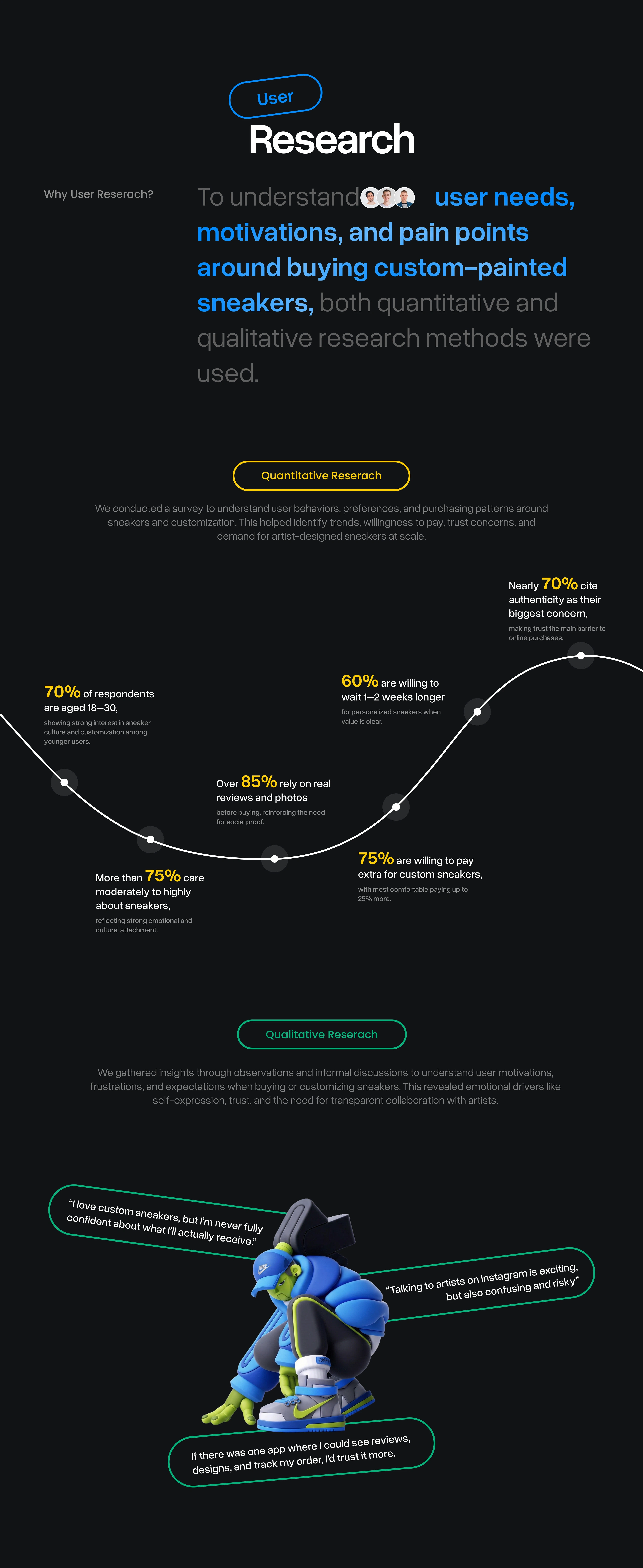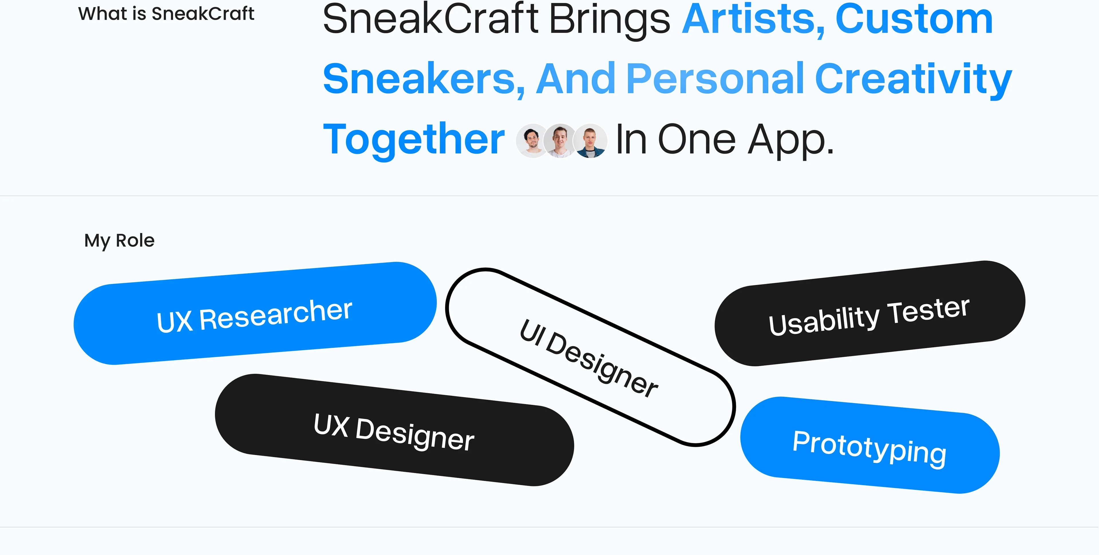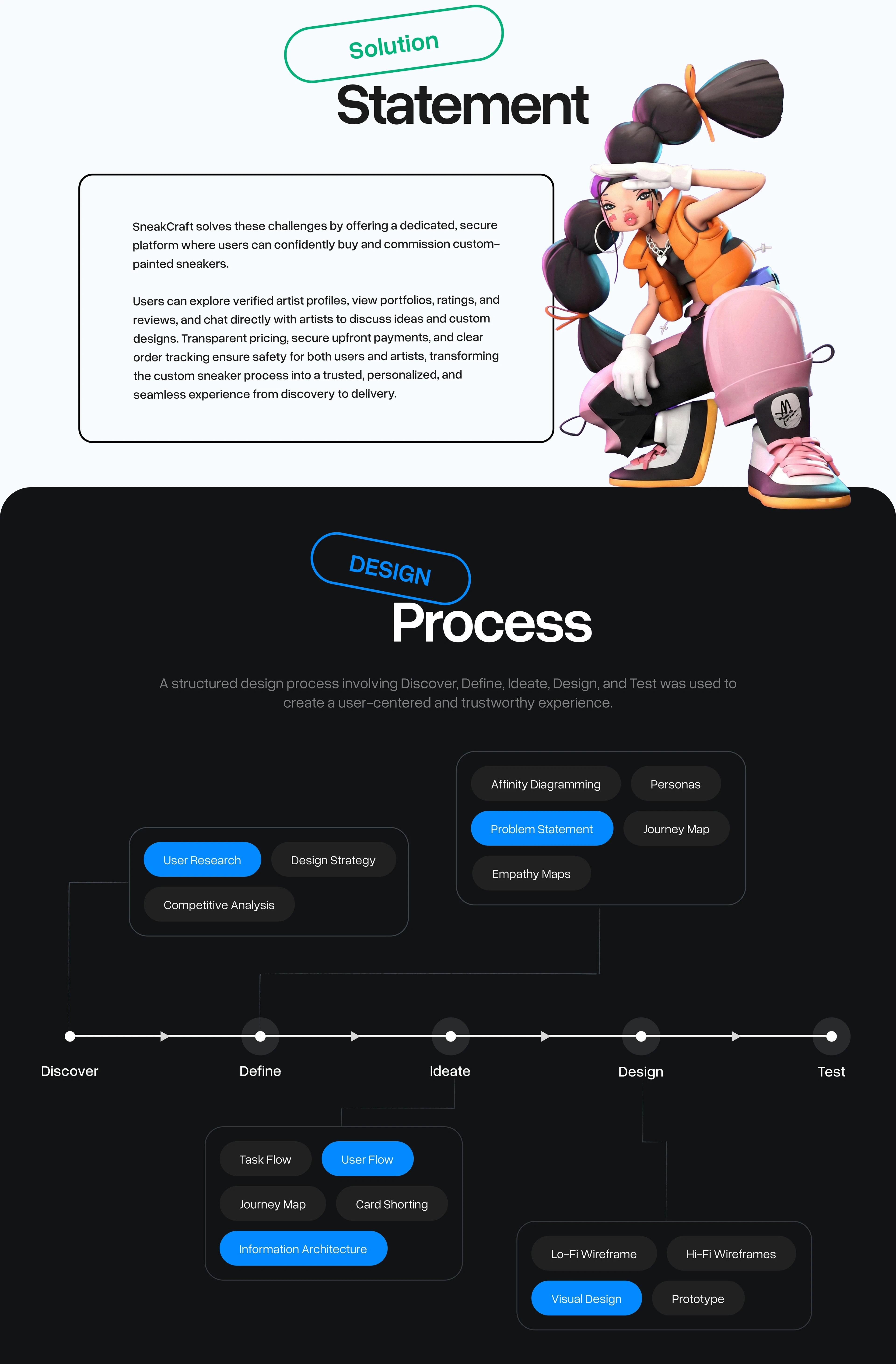 SneakCraft is a UX/UI case study that explores the design of a trusted marketplace for discovering, customizing, and purchasing artist-designed sneakers.