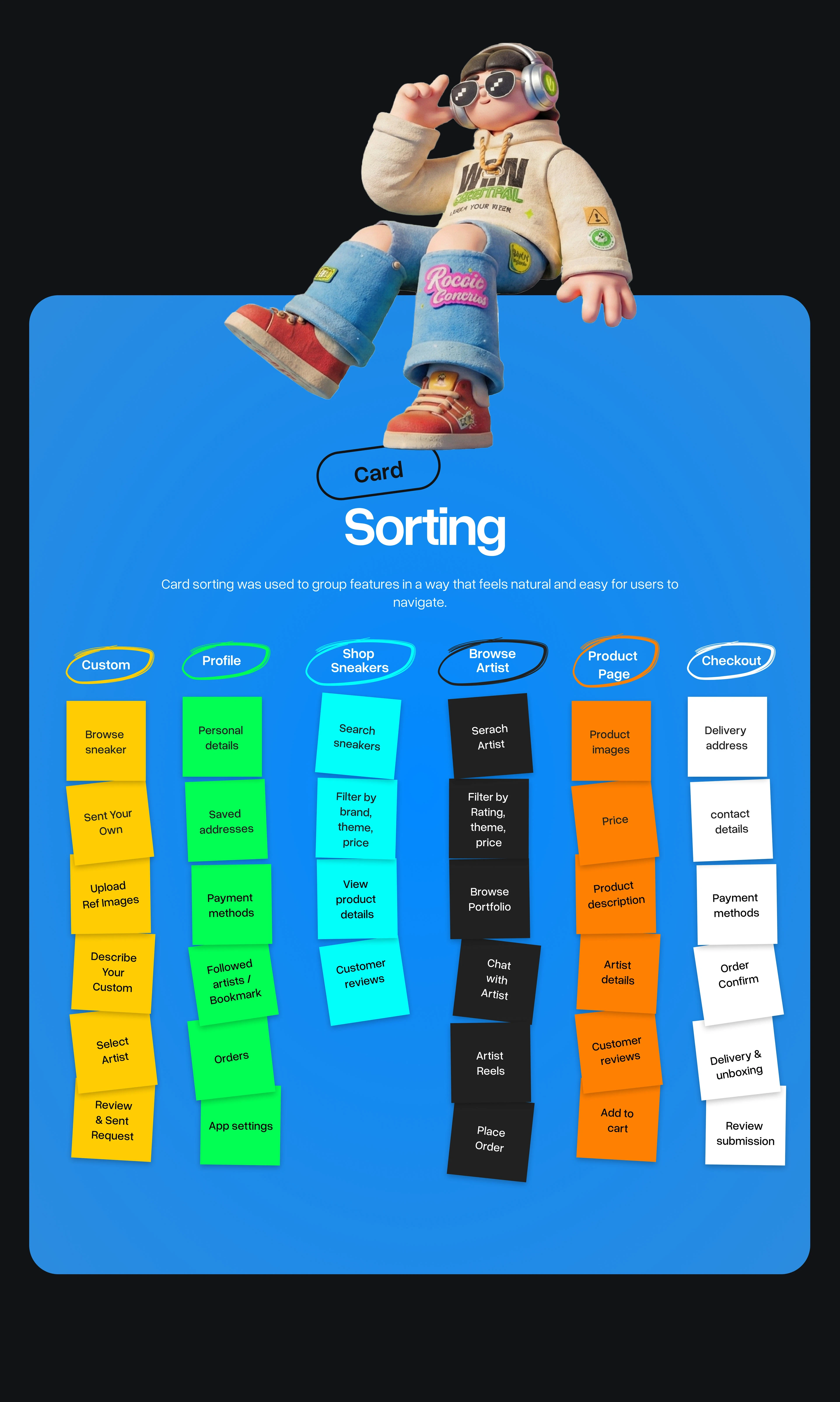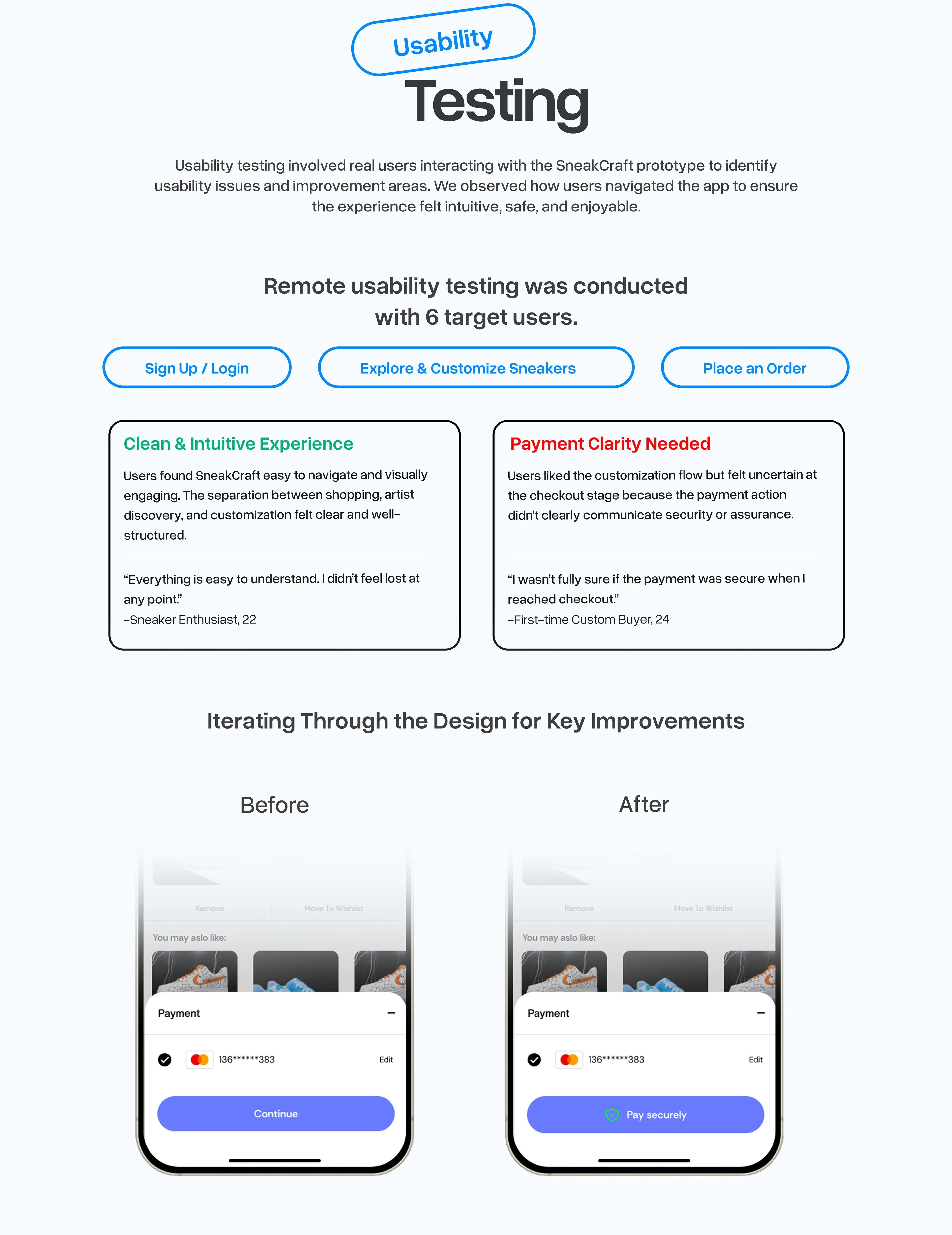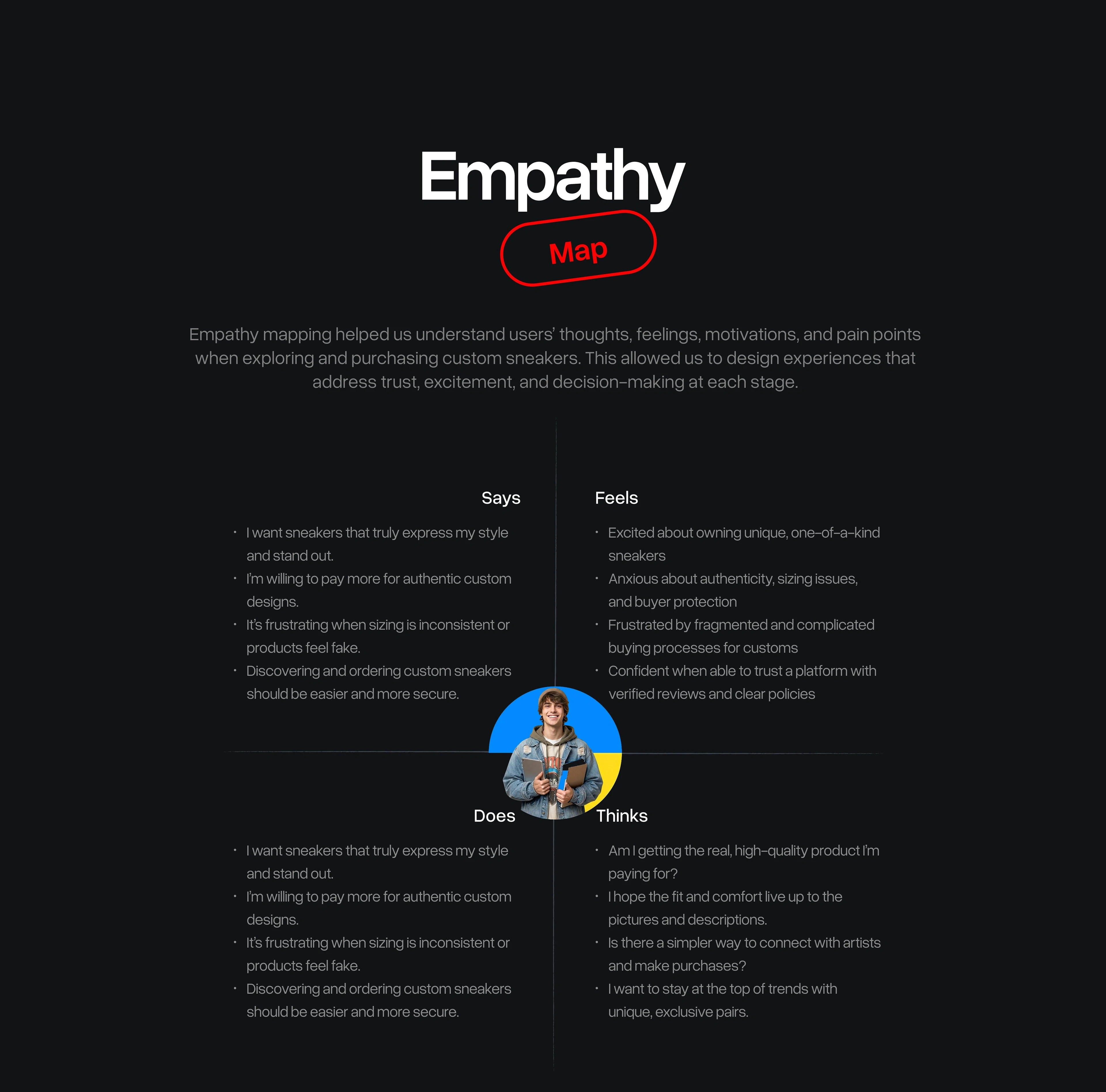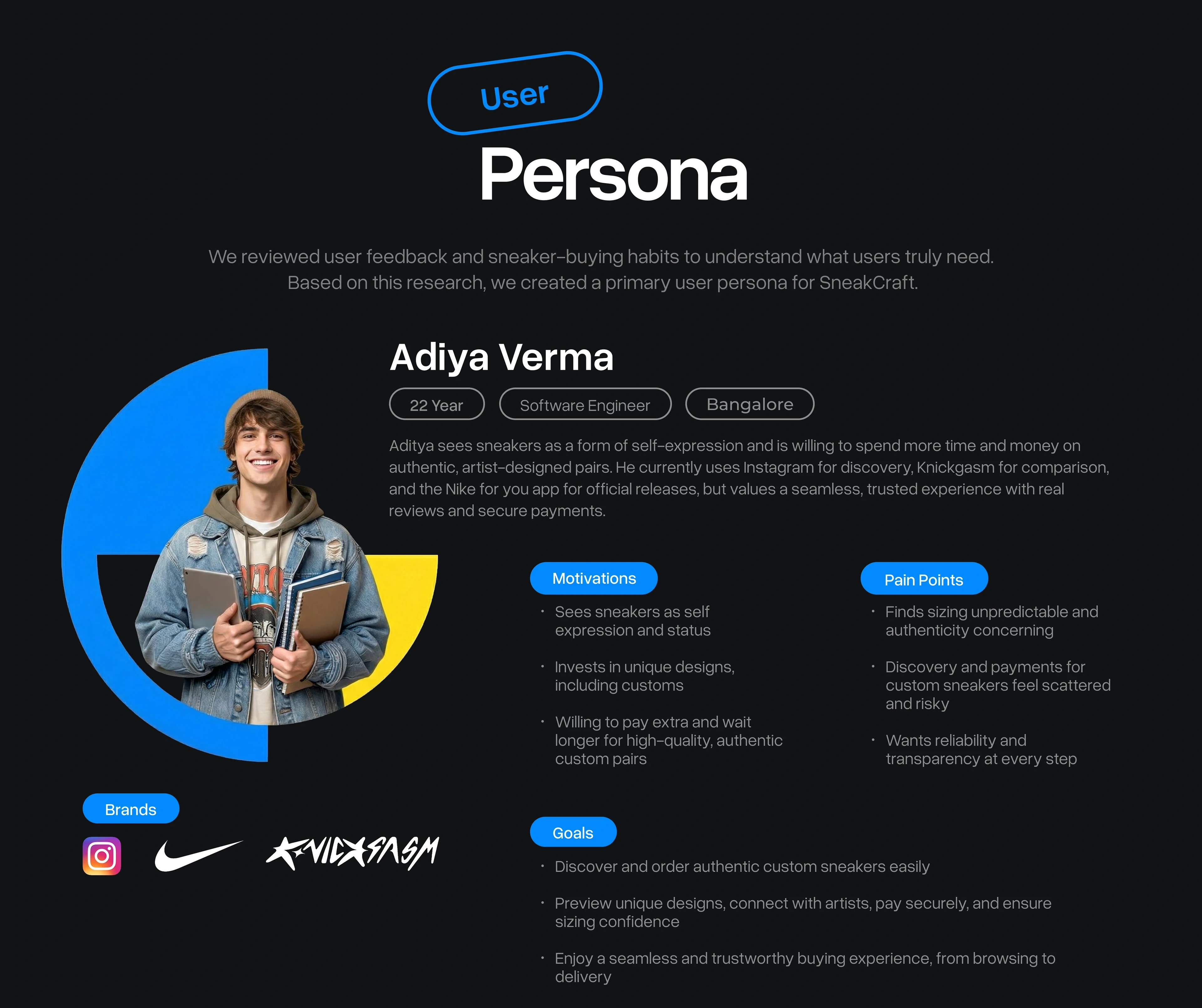 SneakCraft is a UX/UI case study that explores the design of a trusted marketplace for discovering, customizing, and purchasing artist-designed sneakers.