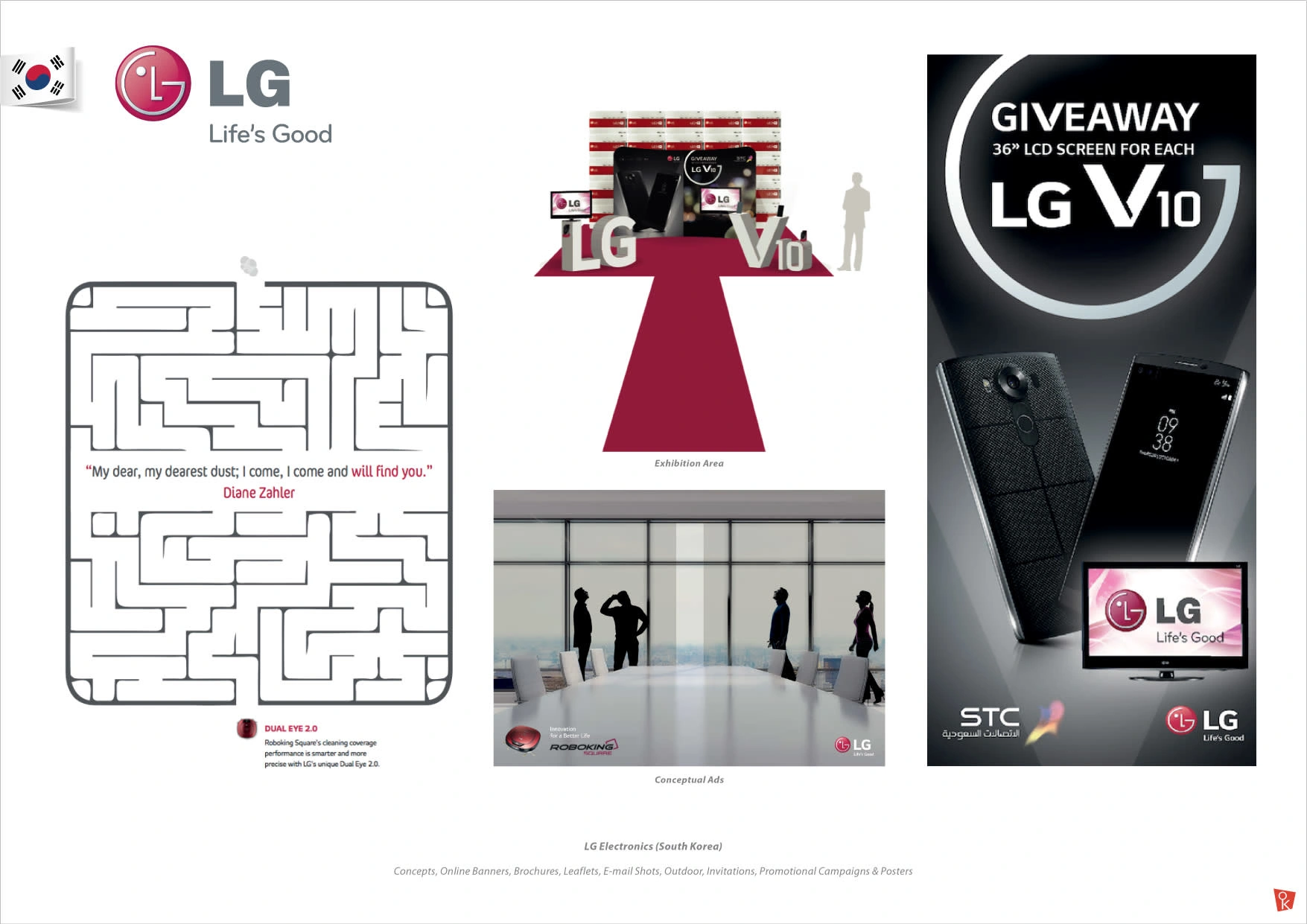 Press Ads, Exhibition Area Conceptual Designs, Brochures, Key Visuals and other print based artwork for LG Electronics.