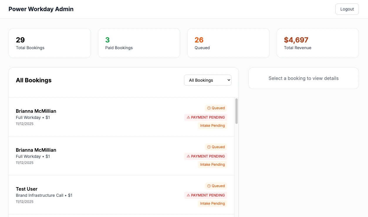 I designed, built, and launched a fully custom booking and operations platform using CreateAnything. This system replaces traditional schedulers and CRMs by giving my brand a completely owned, automated, and branded workflow — from discovery to checkout to delivery.