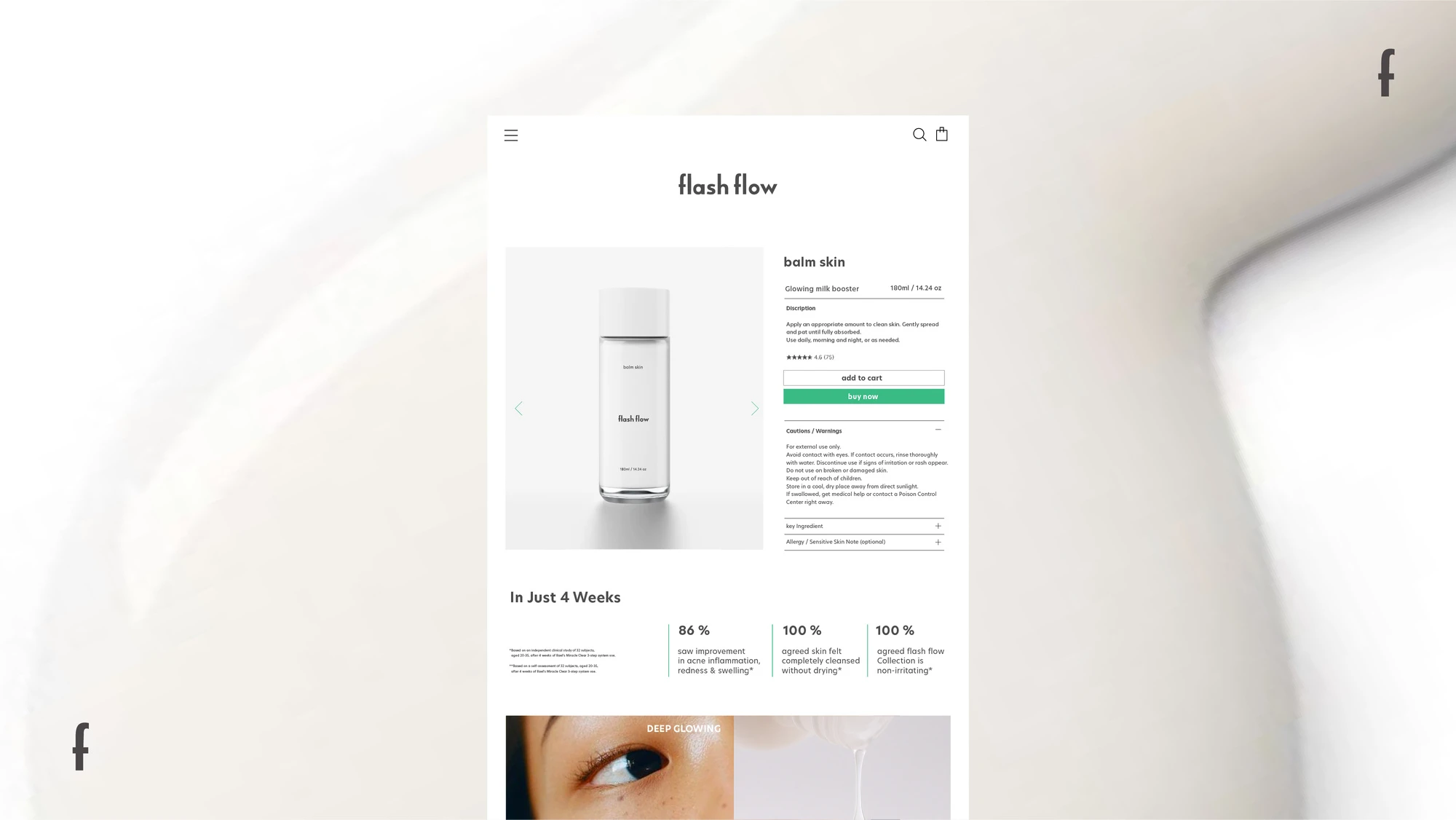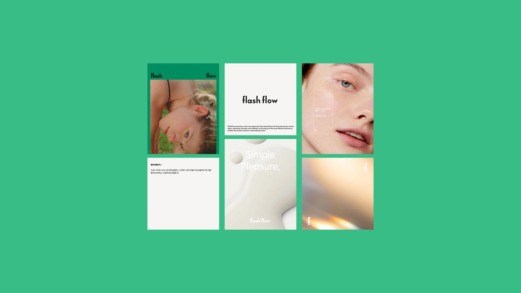 플래시플로우의 첫 에디션 balm skin은, 브랜드가 추구하는 ‘빛의 흐름’이라는 테마를 모이스처한 텍스처와 빛나는 룩으로 표현한 프로젝트입니다.