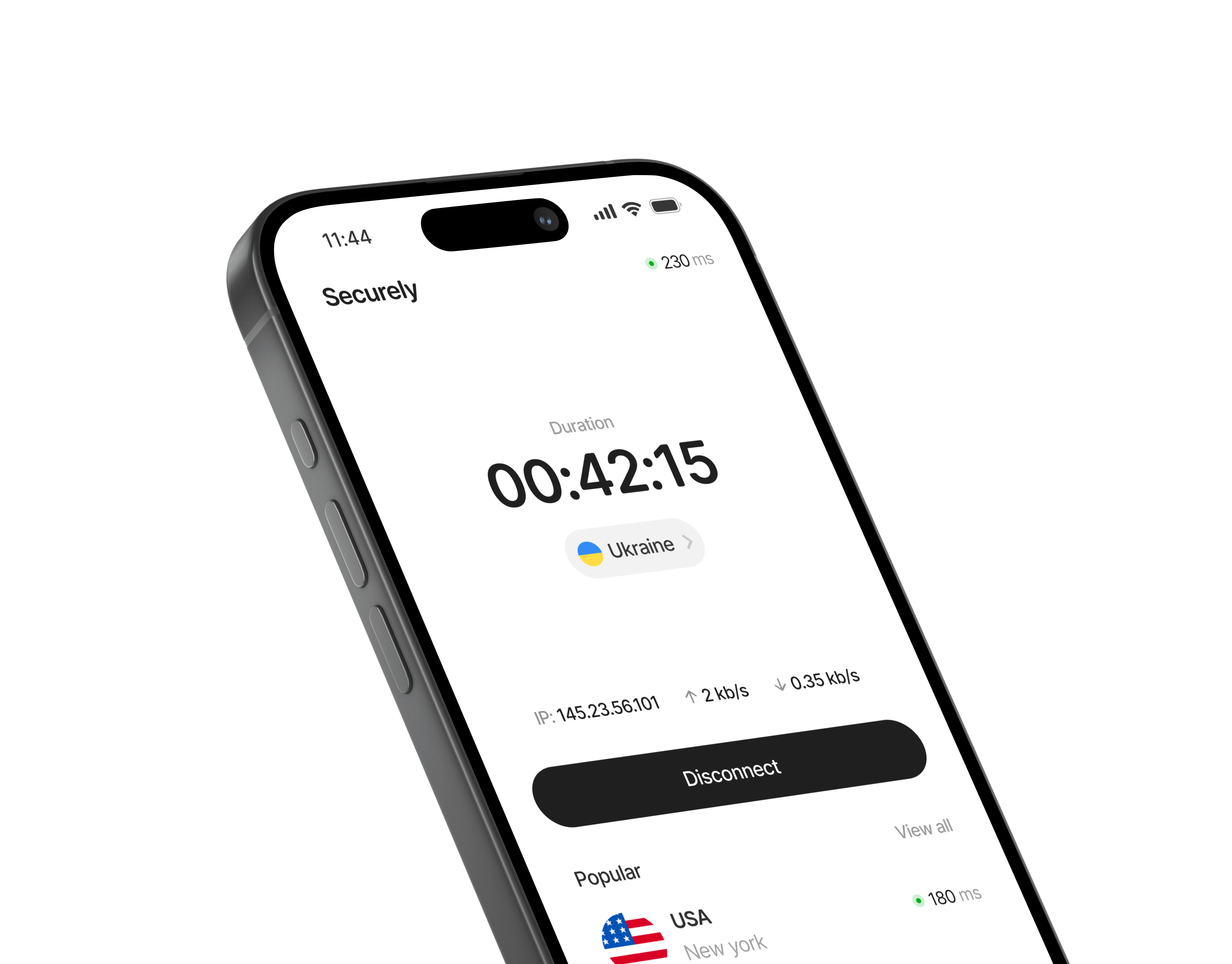 Securely VPNn is a concept app with a clean, simple design that’s easy to use and focused on privacy.