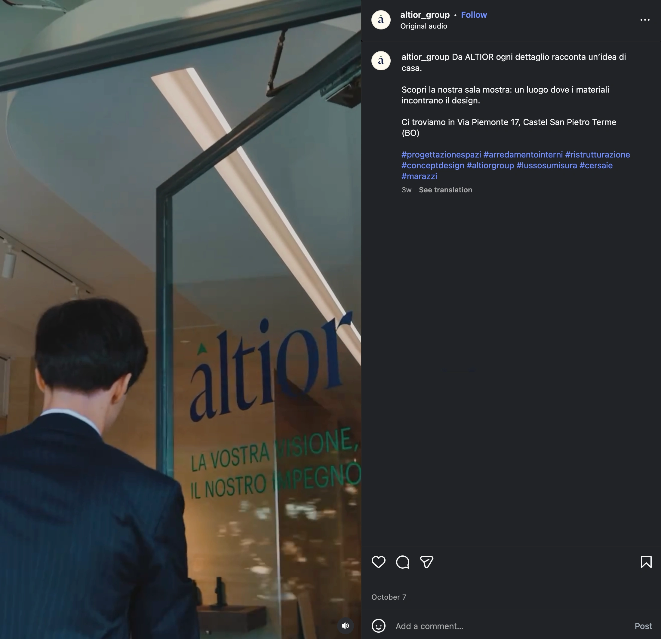 Altior is a young and innovative constructor company based in Italy. It serves HNWI, and is thus positioned in the luxury market.