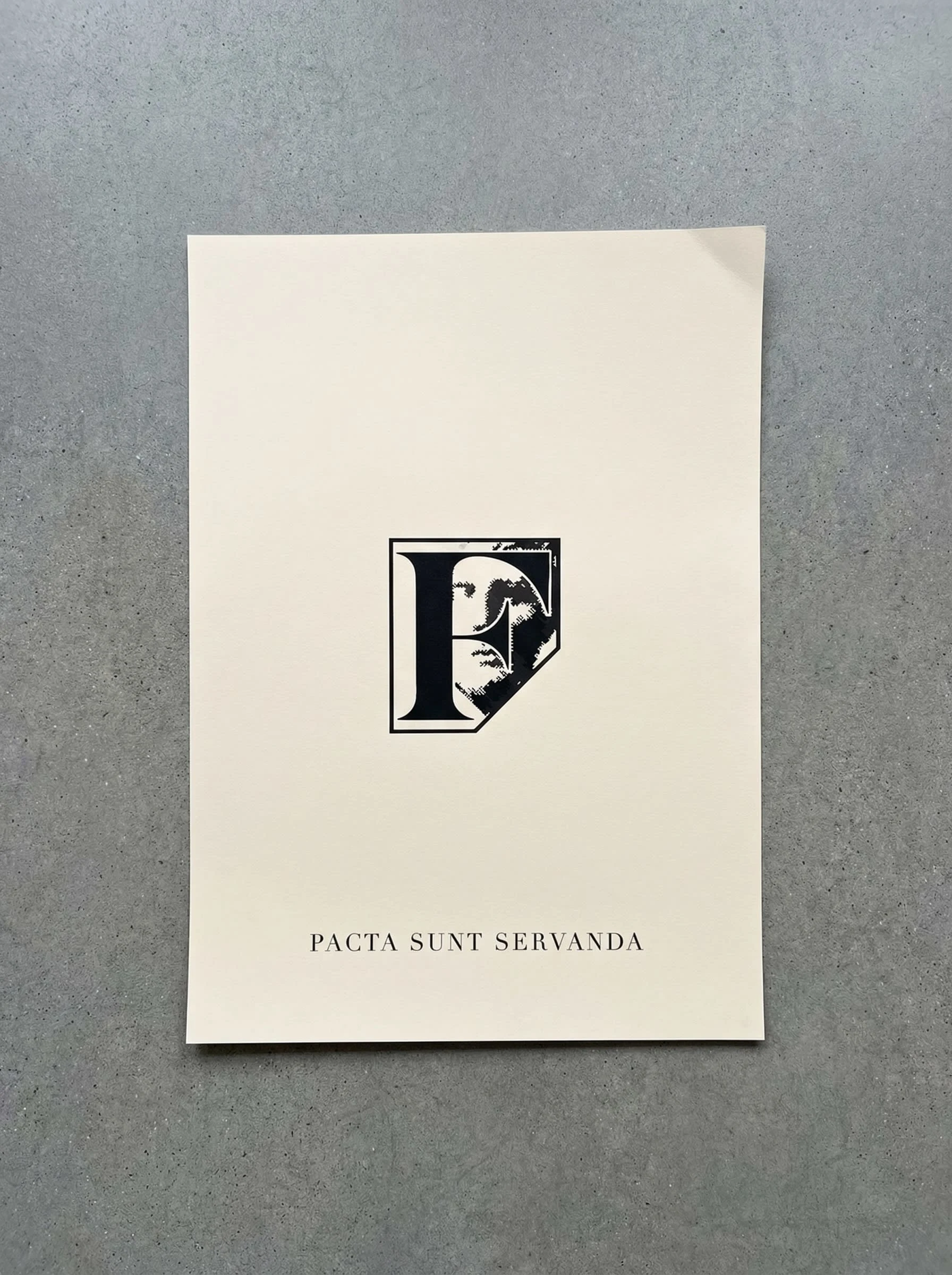 Pacta sunt servanda. Agreements must be kept. The Roman legal principle used untranslated as the primary brand line. For those who know it, it lands immediately. For those who don't, it demands to be looked up — which is itself a brand interaction, a small test of seriousness.
