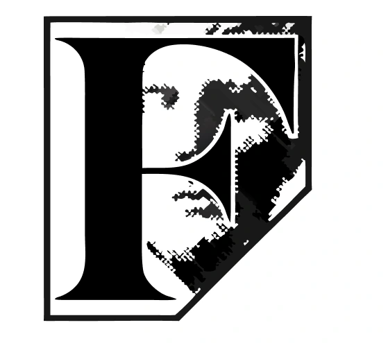 The counter space — the negative area surrounding the F inside the enclosure — contains a dithered halftone of the Capitoline Brutus, a Roman bronze associated with the founding of the Republic and the establishment of civic law. At small sizes the dithering dissolves into texture. At large sizes a face looks back at you from inside the document.