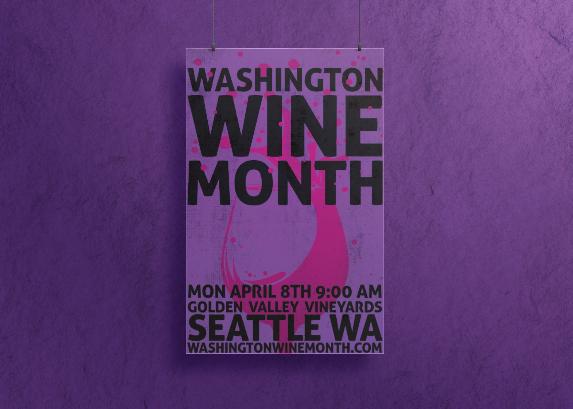 This poster for a yearly wine tasting event is a celebration of elegance and clarity, designed to attract wine enthusiasts with an eye for detail. The overall aesthetic is clean and balanced, ensuring that all essential event information is both visible and easy to read. To guide the viewer, I used a refined layout that divides sections seamlessly, prioritizing event highlights such as the date, time, and location while drawing attention in shades of purple.