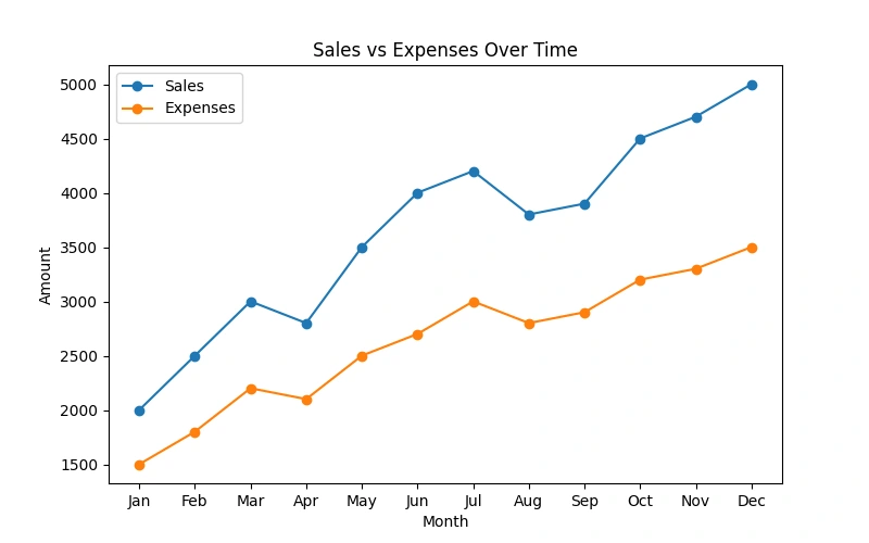 Visualizing sales & expenses with line, bar, and pie charts