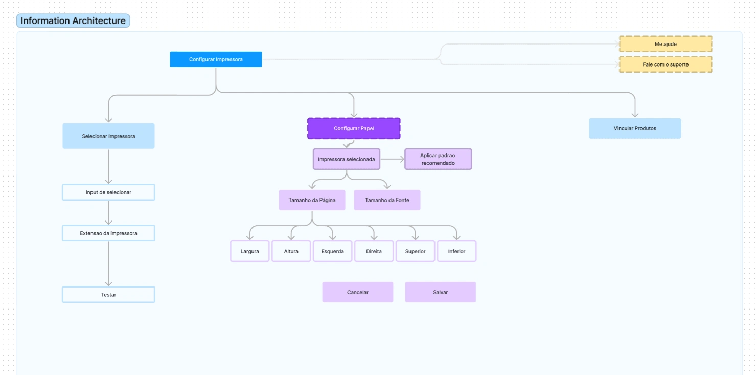 After that, it was time to map out the entire flow that would be ideal for the Support Head and the Printer Technician. We would build together, from scratch, an ideal flow for the user to follow. It took me 2 weeks studying and aproving with PMs and communicating with the team to keep everyone at the same page.