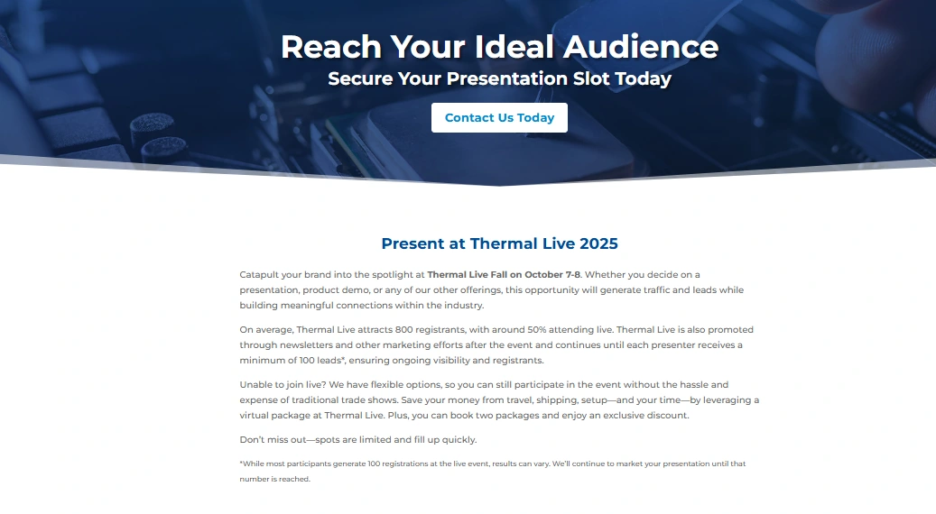 I updated all the website copy for thermal live events.
