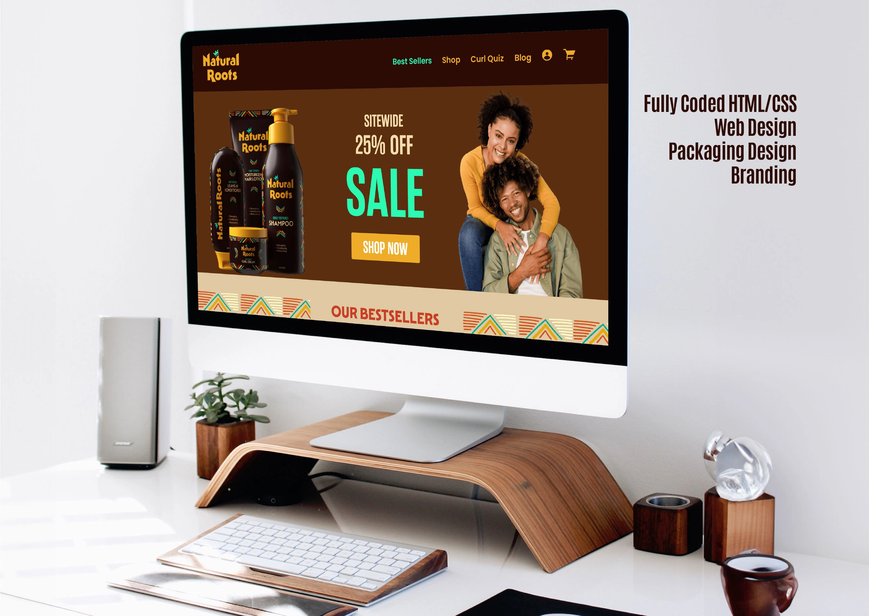 Fully coded HTML/CSS website for Natural Roots, conceptual brand.