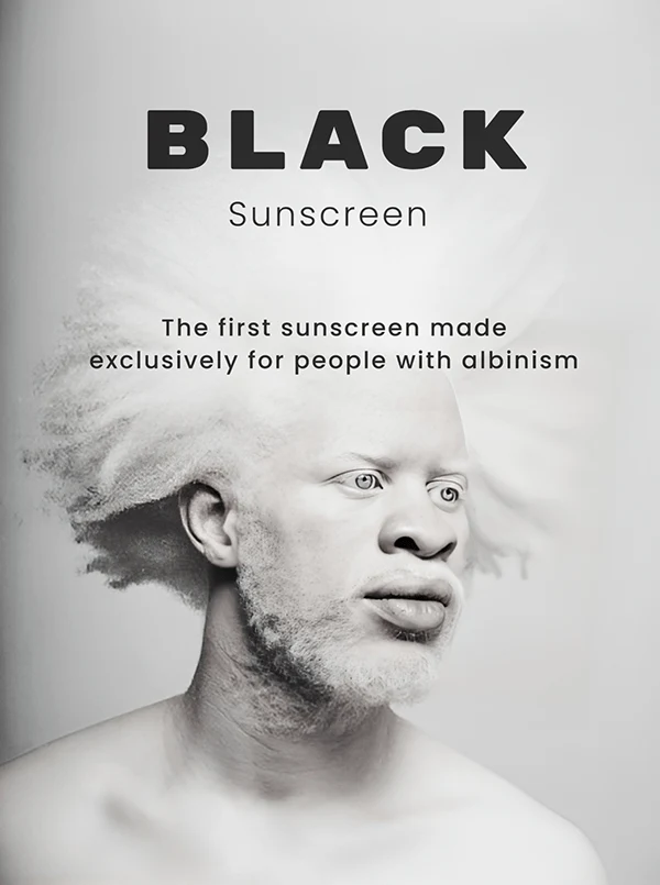 Black Sunscreen avait besoin d'une identité visuelle pour sa gamme de crèmes solaires, conçue spécifiquement pour les personnes atteintes d'albinisme. Ils souhaitaient un design qui capture les valeurs de la marque, axées sur l'inclusion et la equité, tout en reflétant un style exclusif et unique. L'objectif était de créer un packaging qui résonne profondément avec leur public cible, établissant à la fois confiance et élégance.