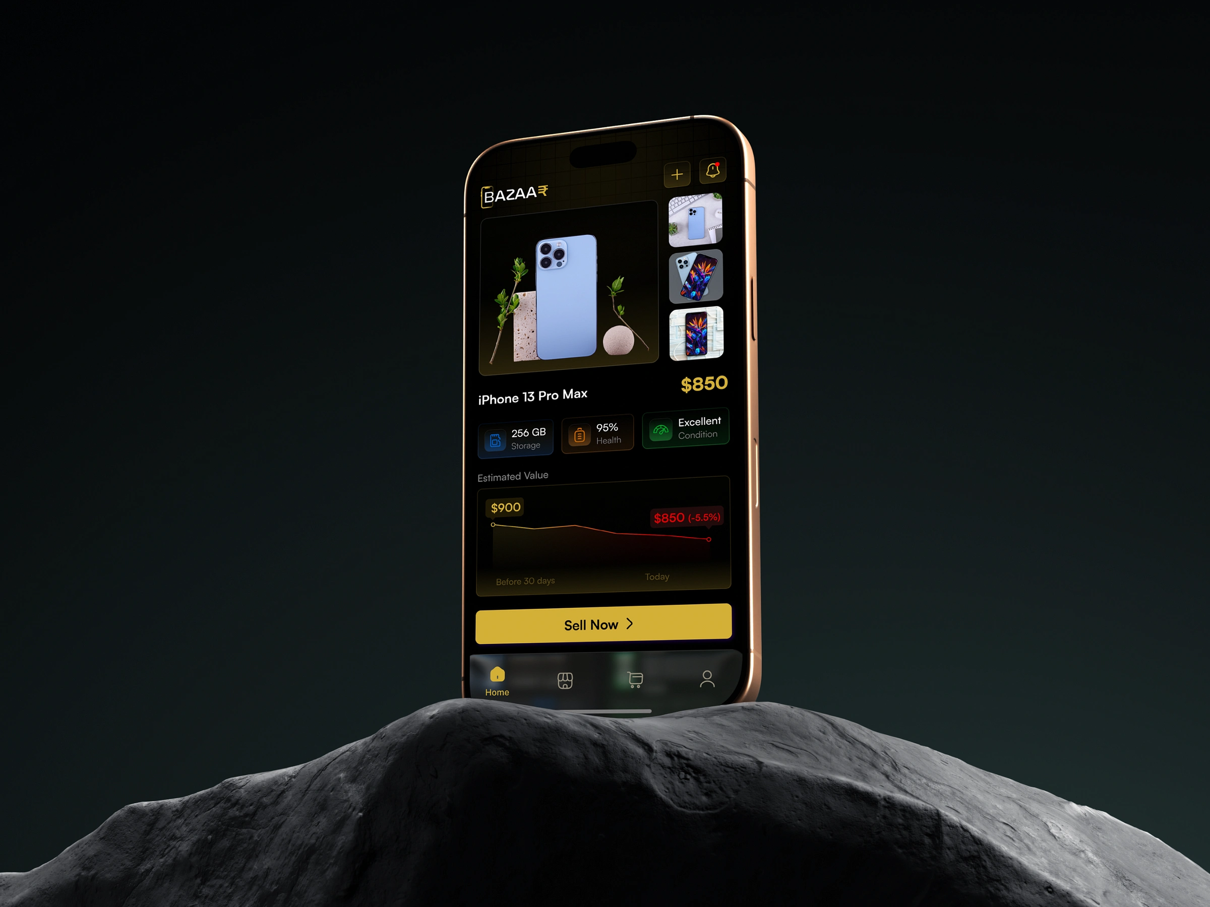 Here’s a sleek concept for a gadget resale platform that gives users instant price estimations and market insights. This mobile app design helps users sell smartphones with confidence. Featuring clean dark mode UI, product analytics, and value drop tracking – ideal inspiration for fintech or eCommerce app designers!
