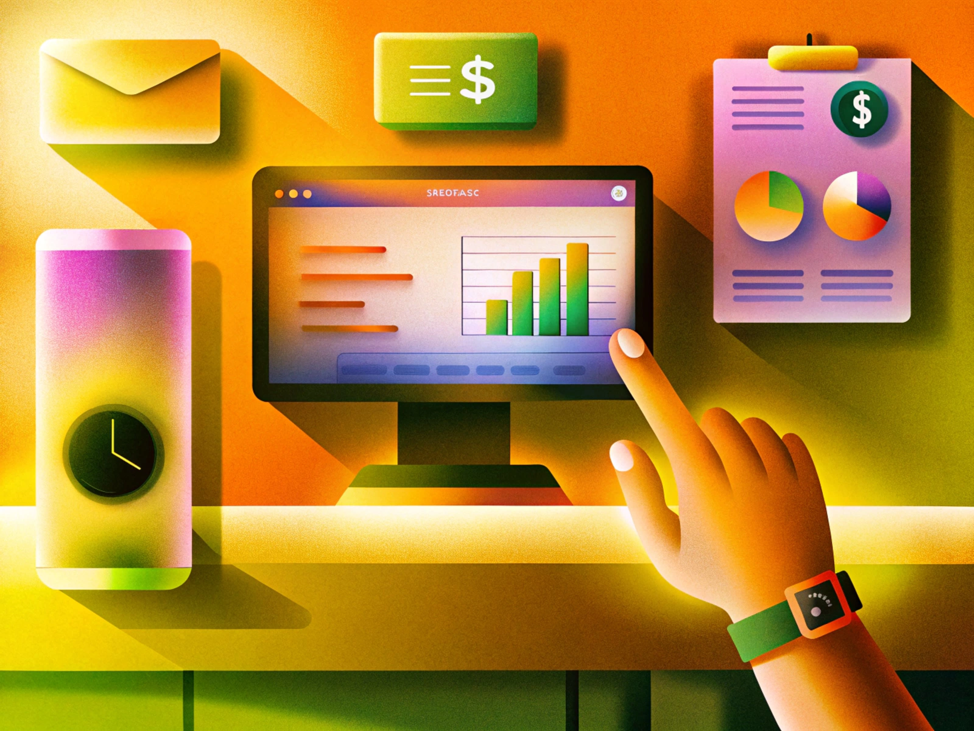 Clean, modern workspace UI with charts, smart interactions, and a productivity vibe—perfect for digital finance or SaaS visuals.