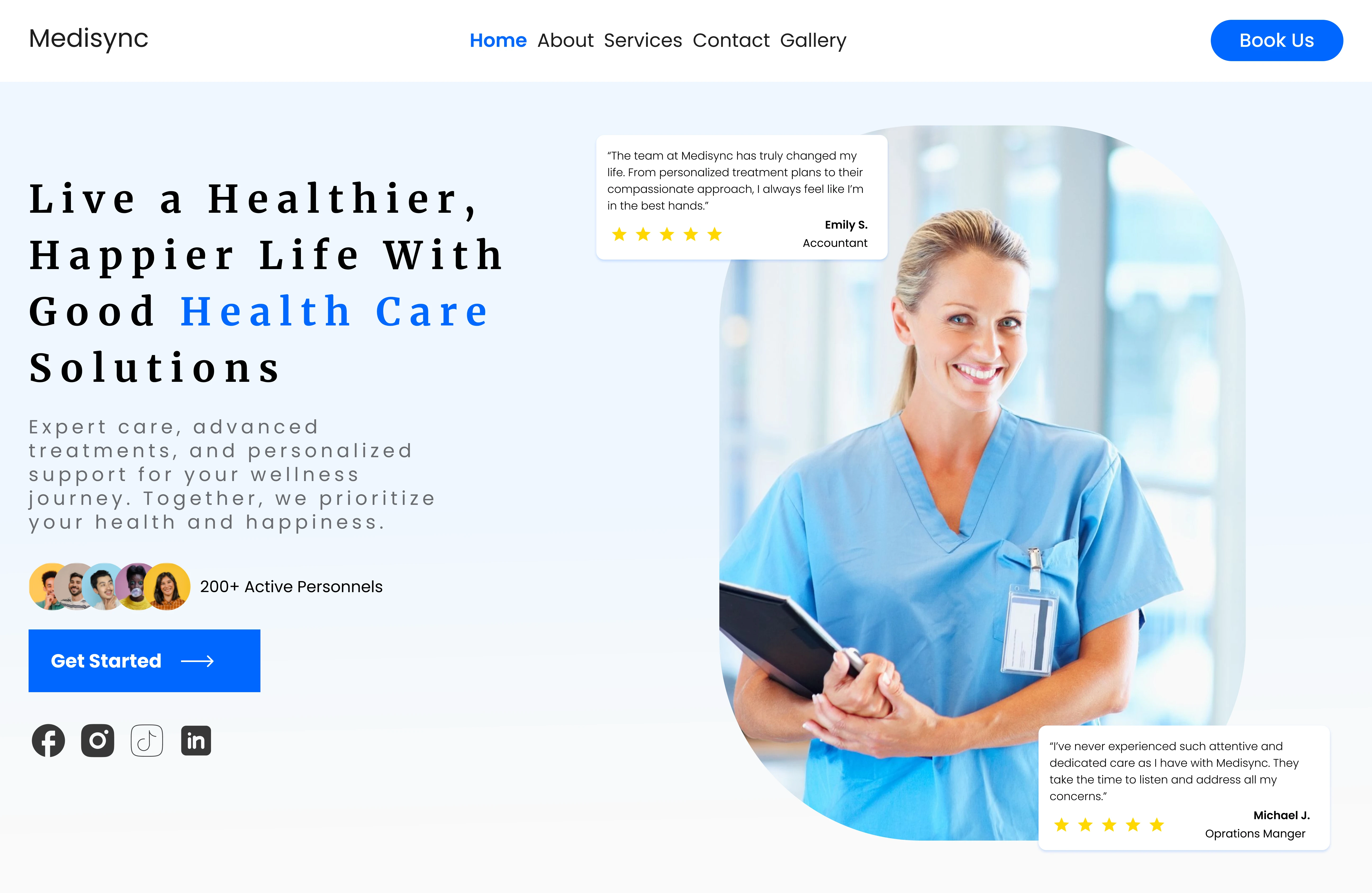 This design is a healthcare hero section built for a high-trust, conversion-focused layout. It establishes credibility by embedding an authentic social proof.