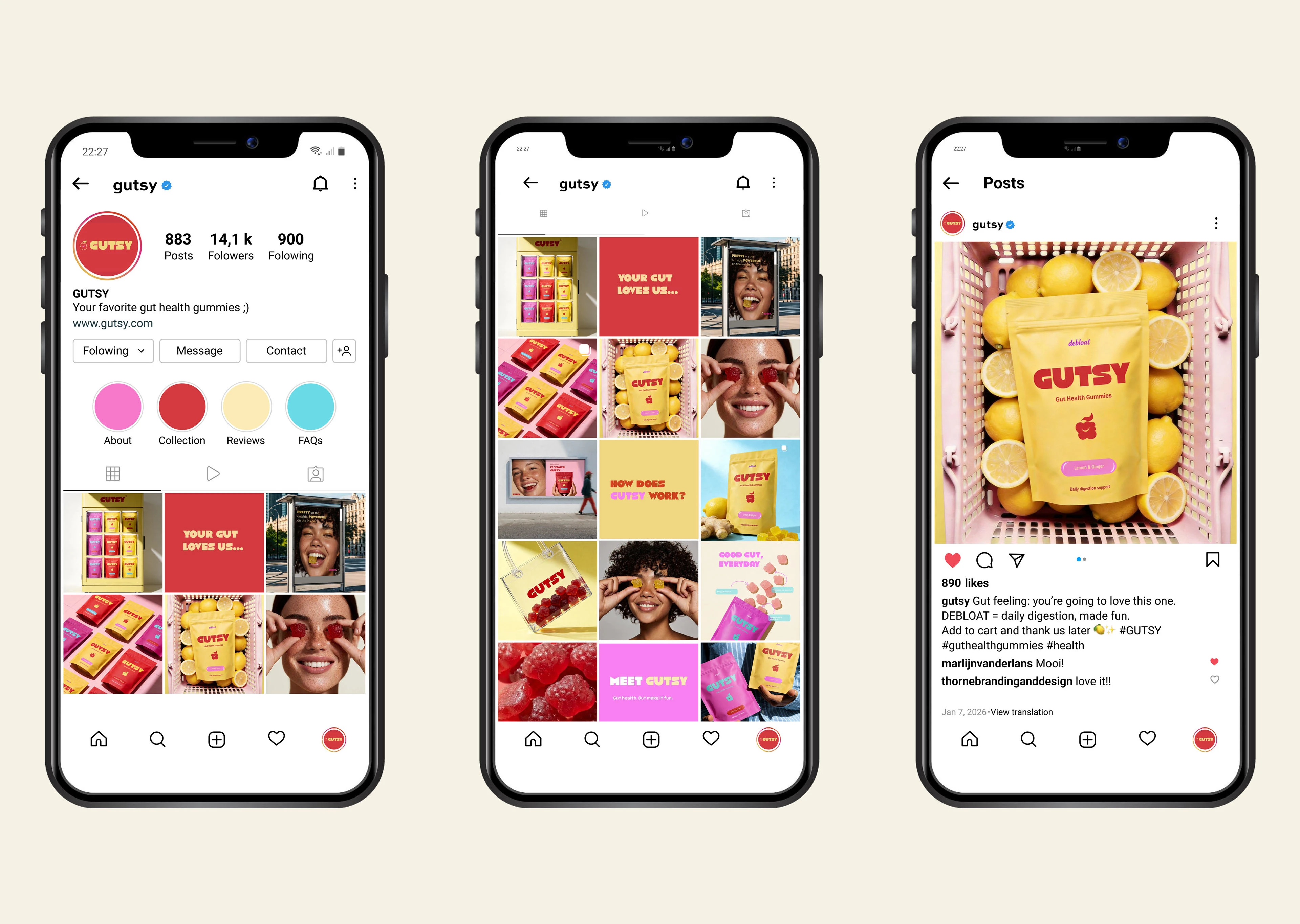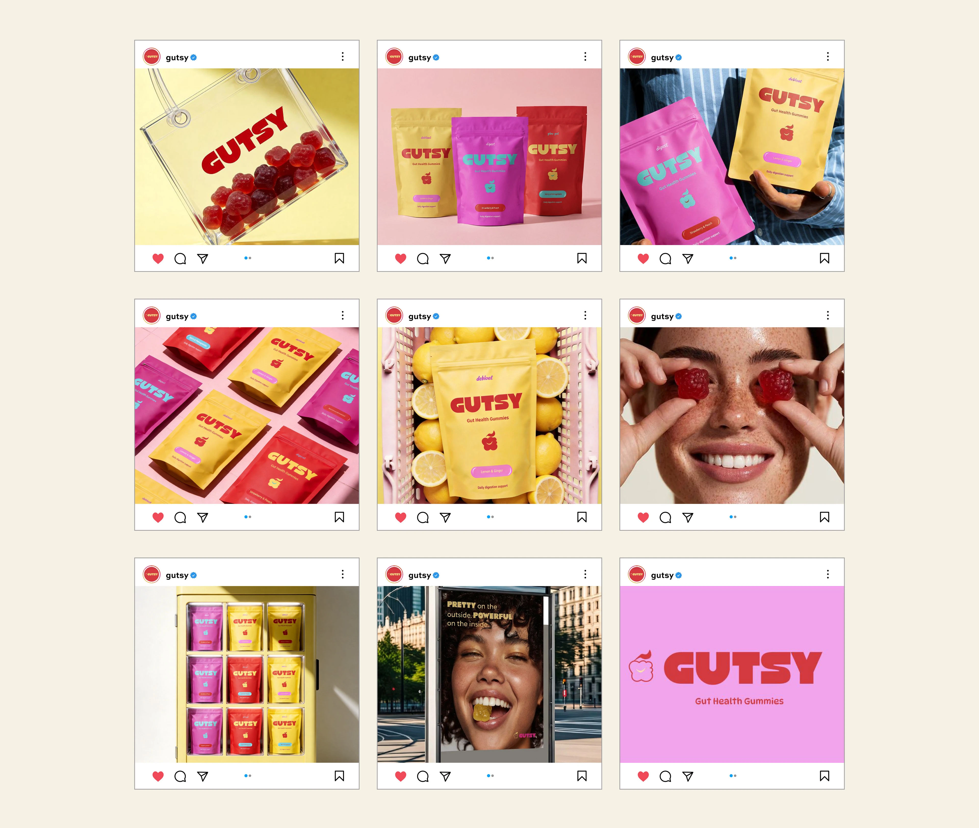 The advertising direction extends the same visual system into paid placements, ensuring consistency across Instagram, Meta ads, and potential out-of-home applications. Each execution balances playful personality with functional clarity, reinforcing both brand identity and product credibility.