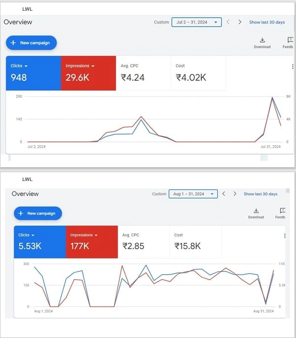 · Avg. CPC reduced by 33%, from ₹4.24 to ₹2.85