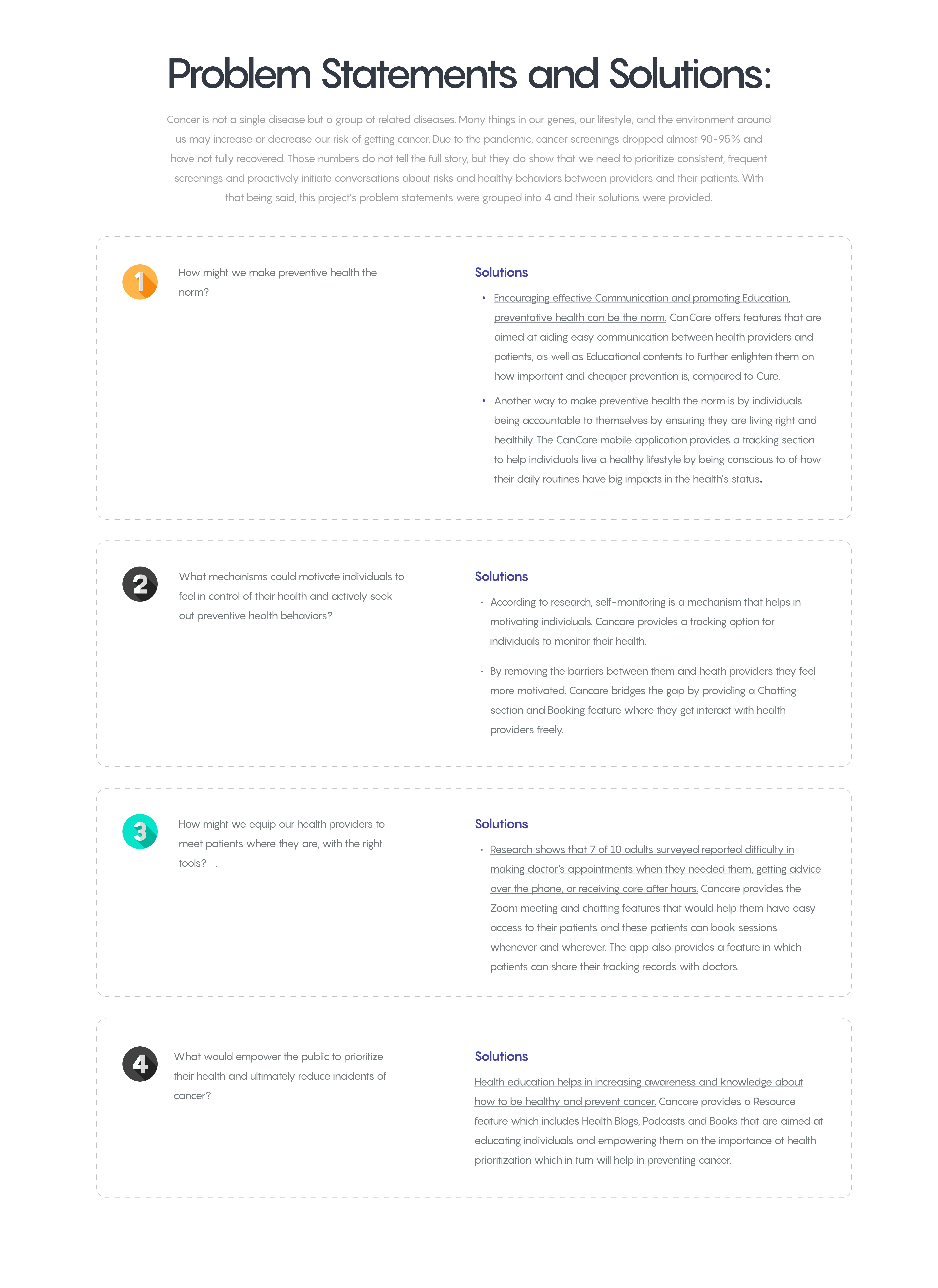 Cancare app connects cancer patients to doctors for intentional and consistent checkups, which which play a vital role in staying healthy.