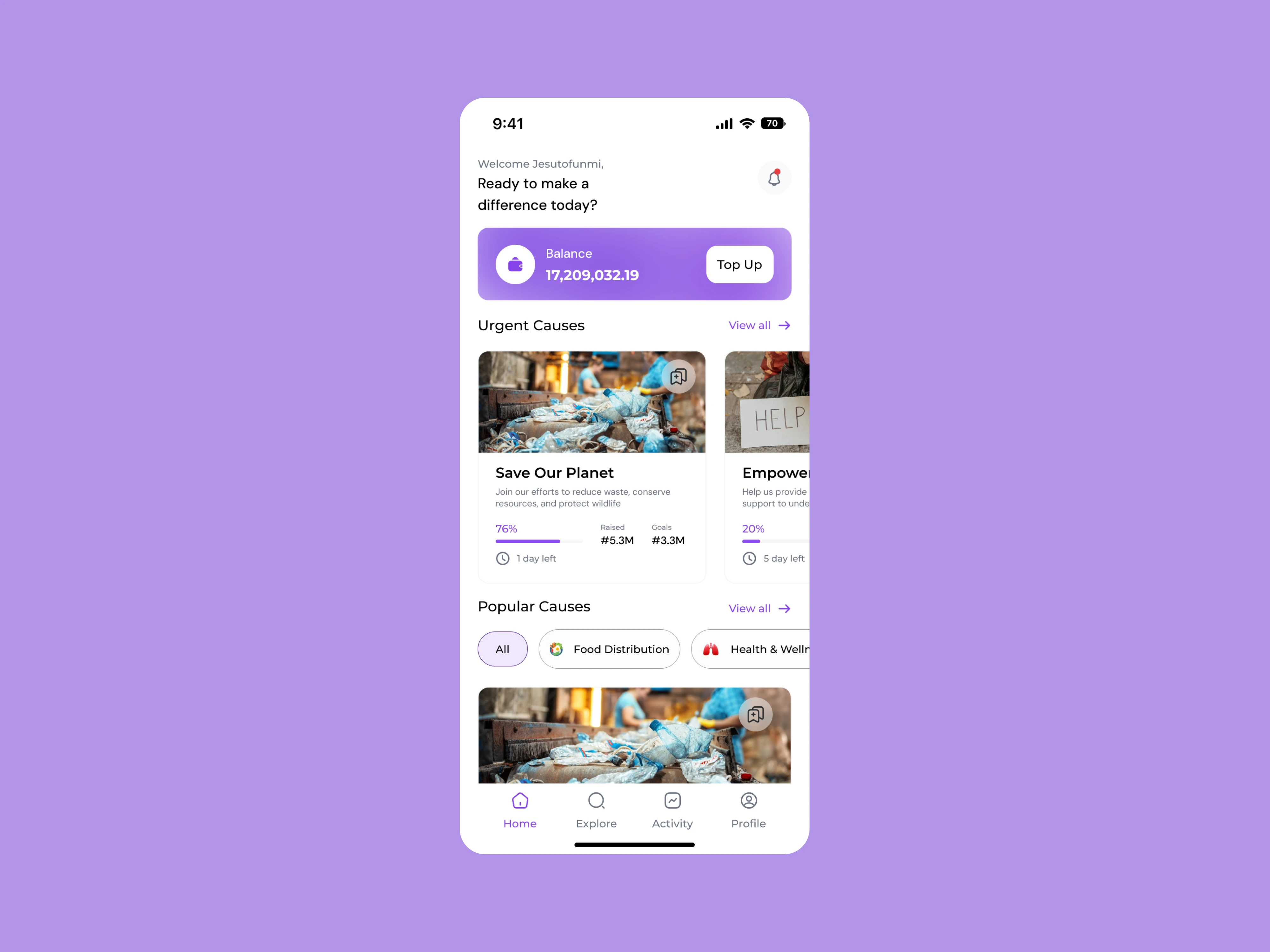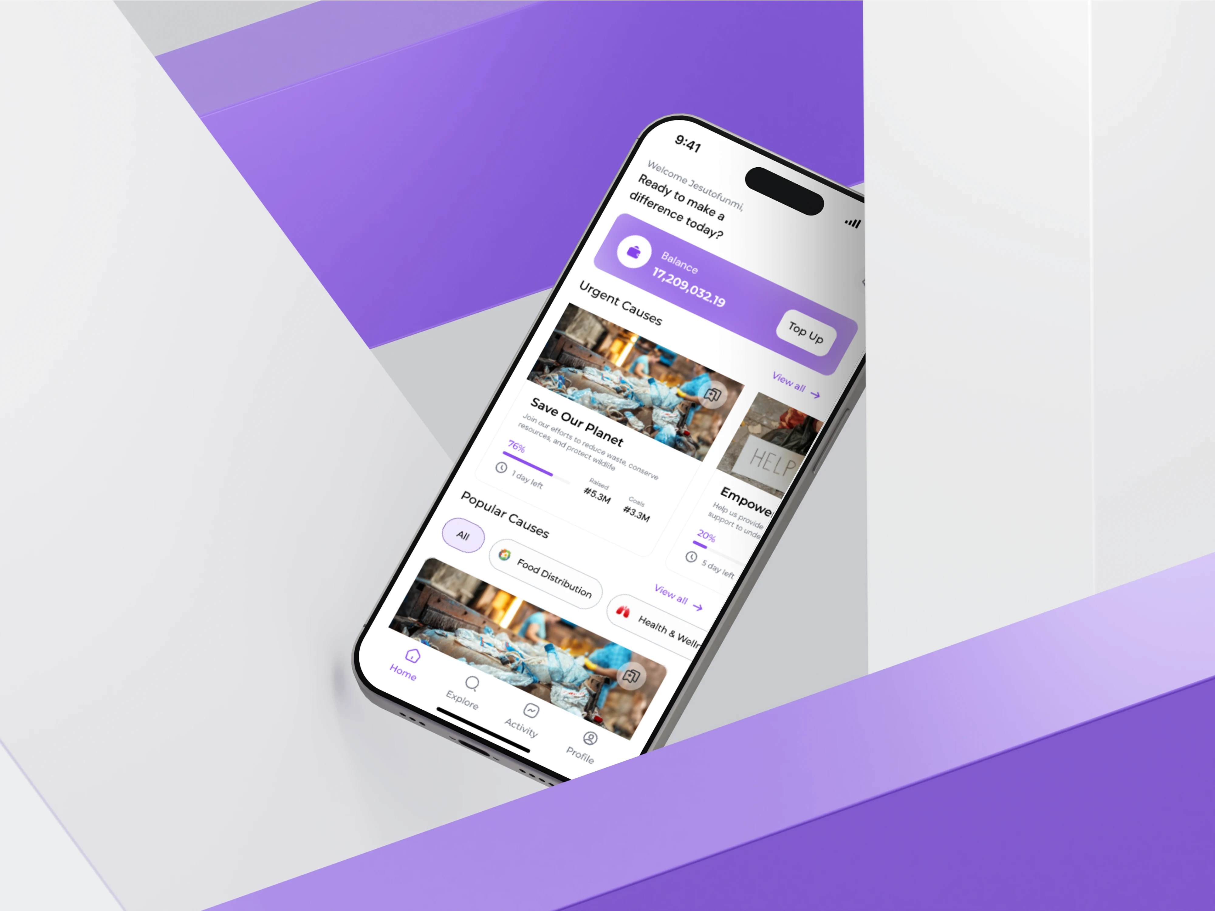 The client wanted to build a mobile-first platform that made charitable giving feel personal, urgent, and rewarding. Their goal was to help users discover causes, track their impact, and contribute effortlessly β all from a single app.
